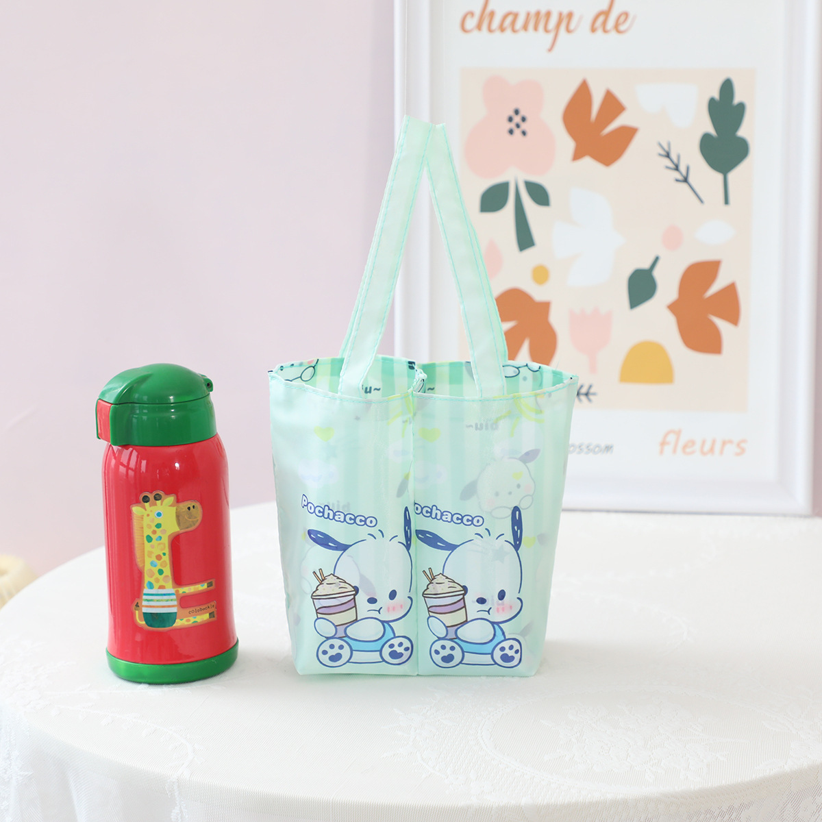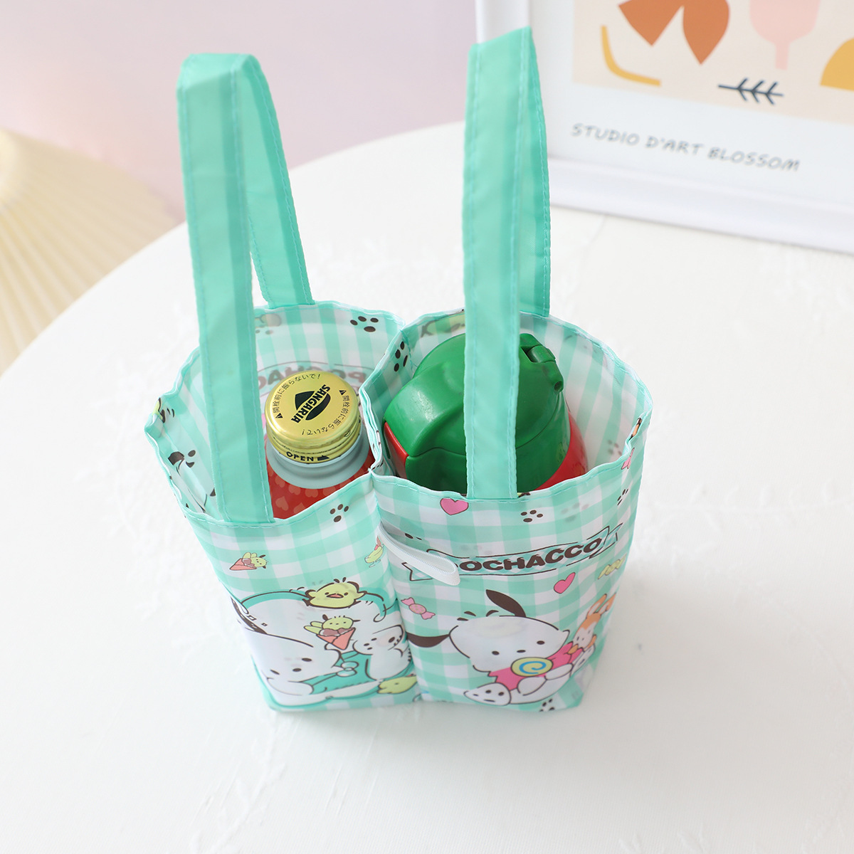 새로운 만화 접이식 가역 이중 목적 더블 컵 대만 우유 티 컵 가방 병 컵 가방