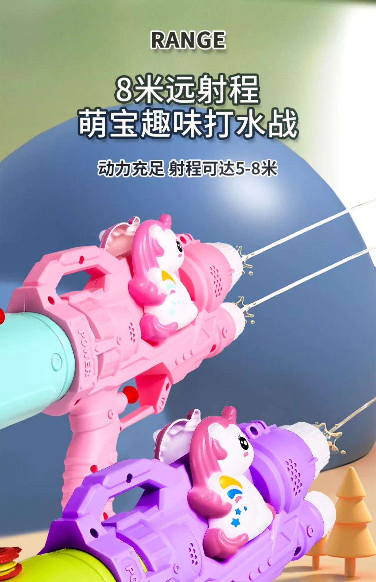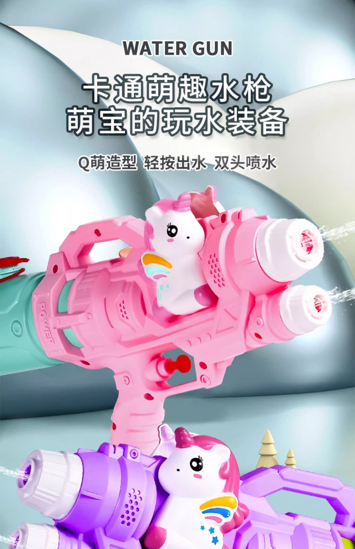 • 2025 업그레이드 모델 [듀얼노즐] 카툰인형 유니콘 물총 - 퍼플