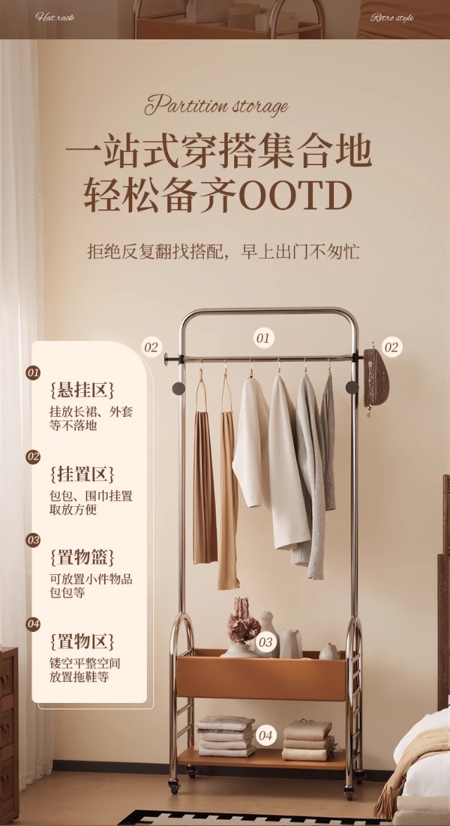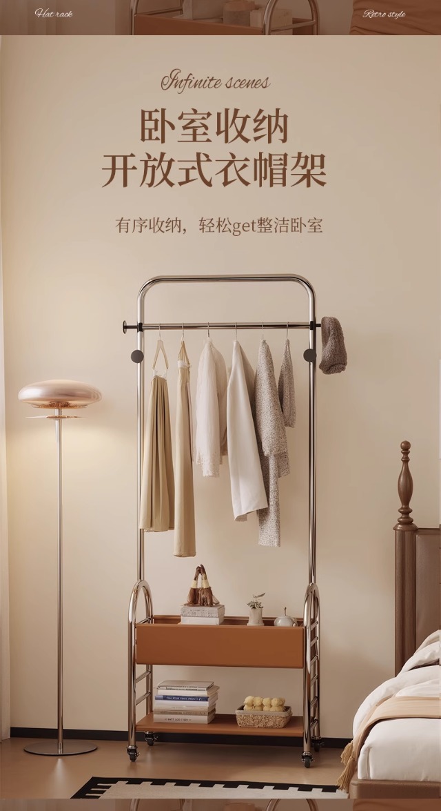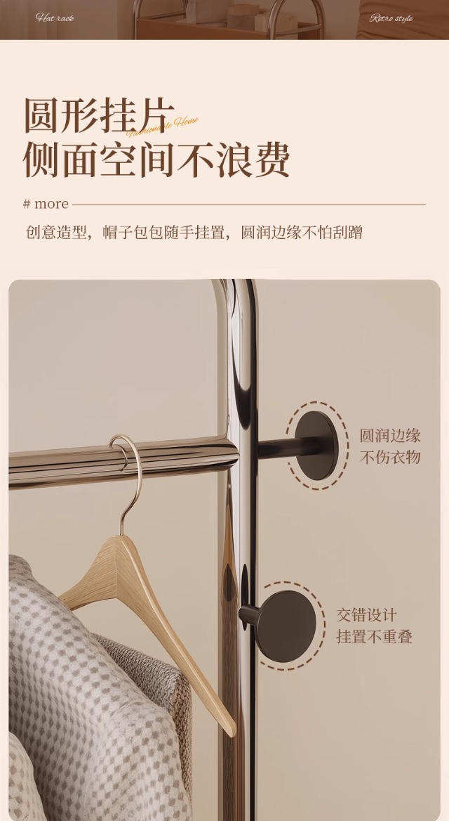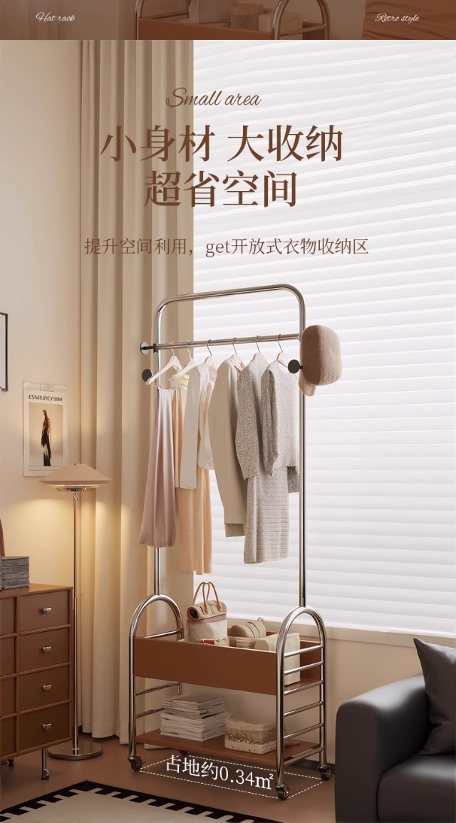 코트 랙 바닥 스탠딩 수직 다층 이동식 홈 침실 옷걸이 중세 스타일 의류 매장 특별 디스플레이 랙