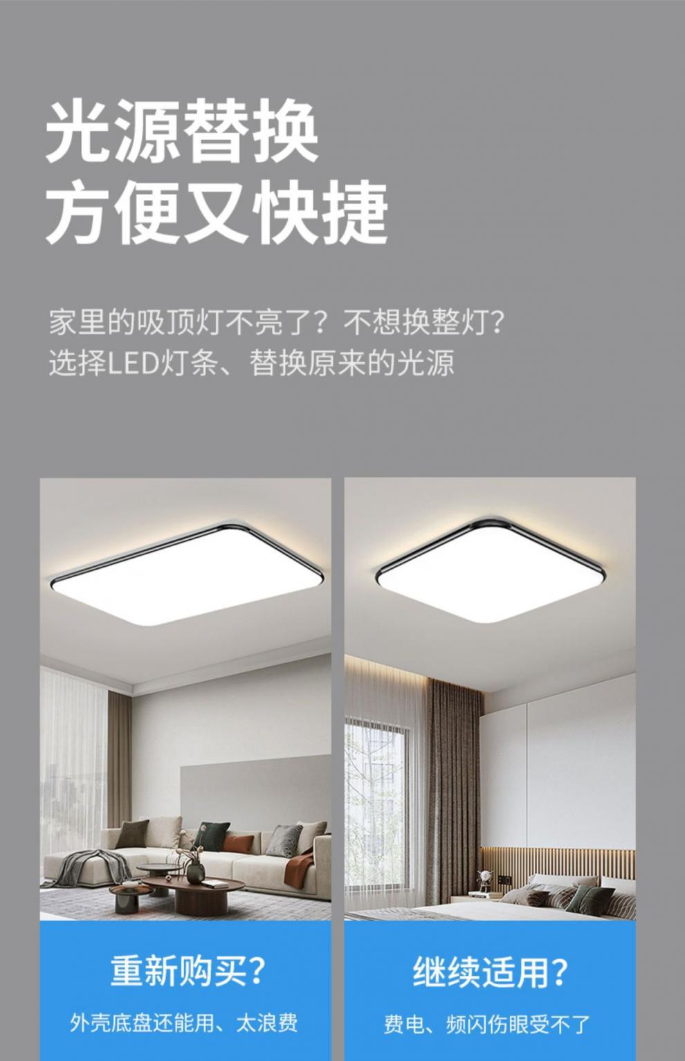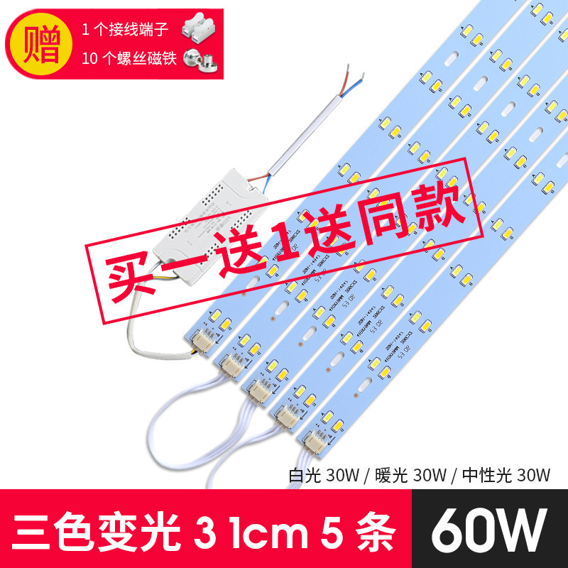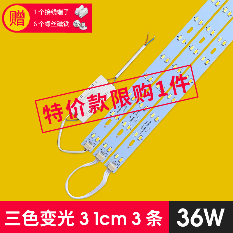 하이라이트 led 스트립 긴 천장 램프 심지 개조 교체 램프 보드 3 색 조광 거실 램프 스트립 패치