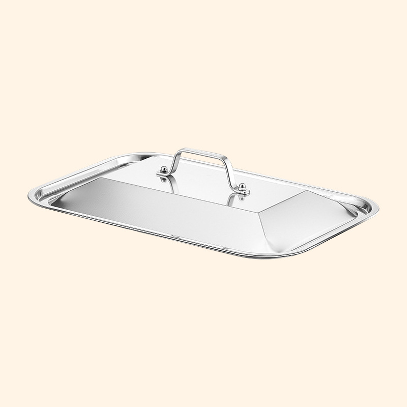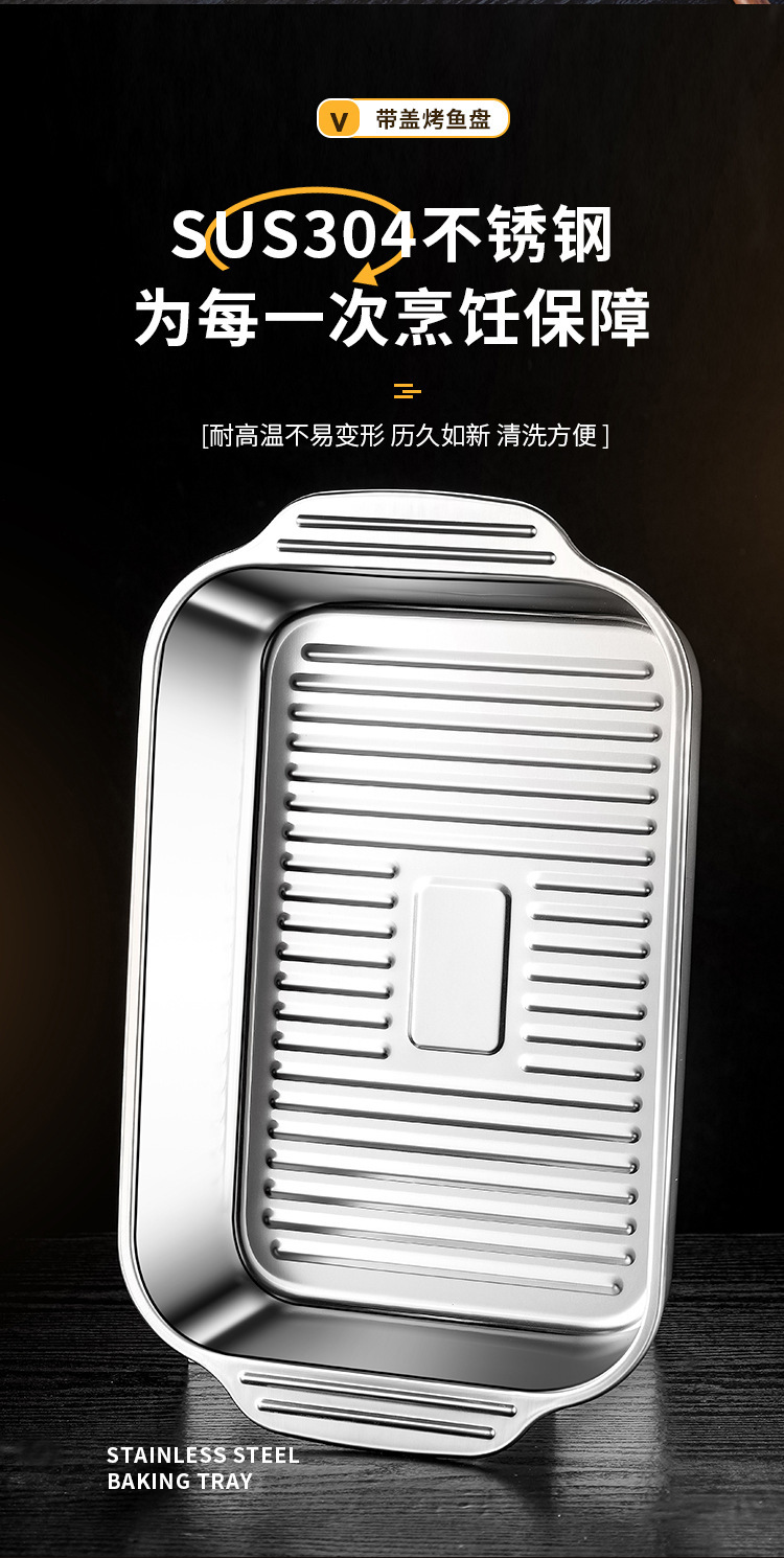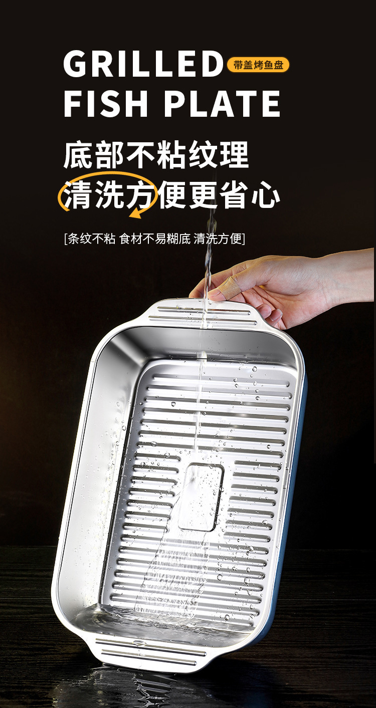 스테인레스 스틸 구이 생선 플레이트 유도 쿠커 상업용 가재 바베큐 플레이트를위한 뚜껑 특수 트레이와 직사각형 두꺼운 딥 플레이트