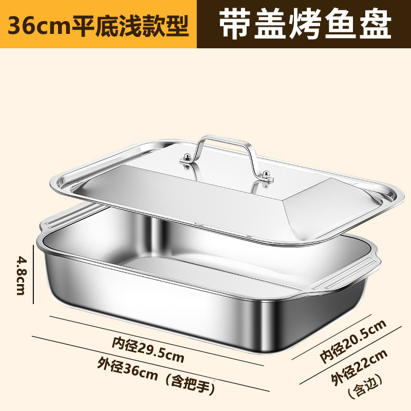 • 36cm 평평한 바닥 얕은 생선 구이 접시(뚜껑 포함)