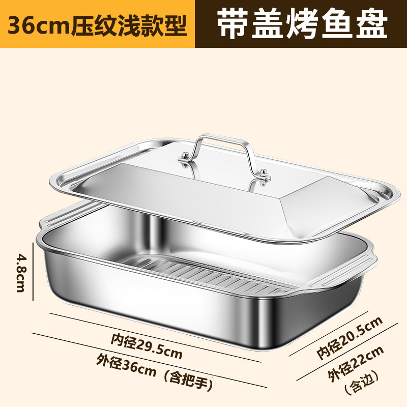 스테인레스 스틸 구이 생선 플레이트 유도 쿠커 상업용 가재 바베큐 플레이트를위한 뚜껑 특수 트레이와 직사각형 두꺼운 딥 플레이트스토어 가기