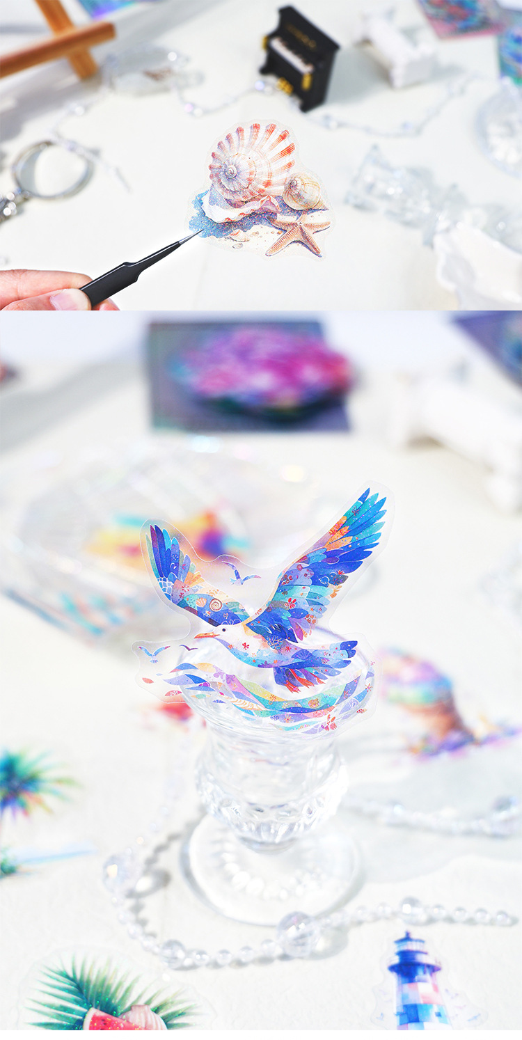 국경 고대 숲 PET 스티커 가방 바다 멜로디 시리즈 해저 손 계정 기본 소재 장식 DIY