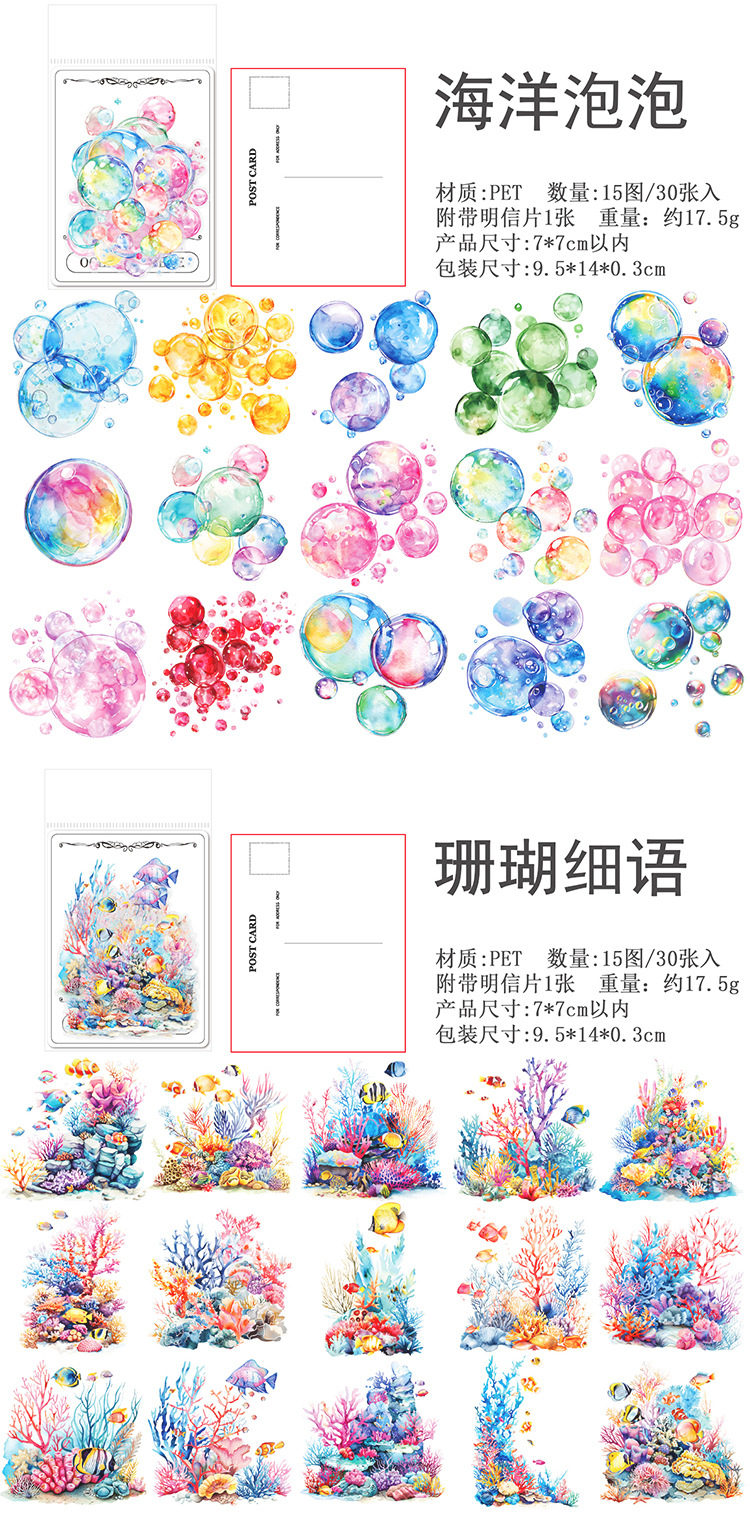 국경 고대 숲 PET 스티커 가방 바다 멜로디 시리즈 해저 손 계정 기본 소재 장식 DIY스토어 가기
