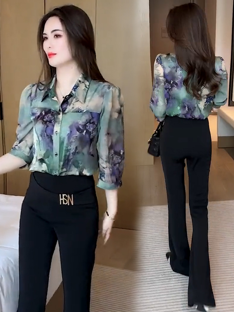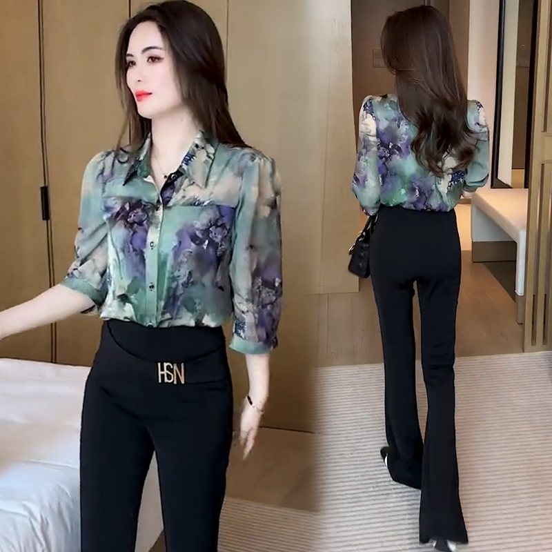 새로운 중국 셔츠 여성의 스키니 살을 덮는 탑 2024 여름 서양식 국가 스타일 셔츠 올해 인기있는 아름다운 작은 셔츠스토어 가기