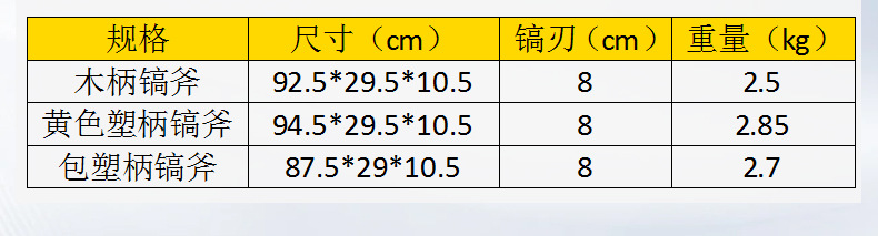 • 노란색 플라스틱 손잡이 곡괭이 도끼