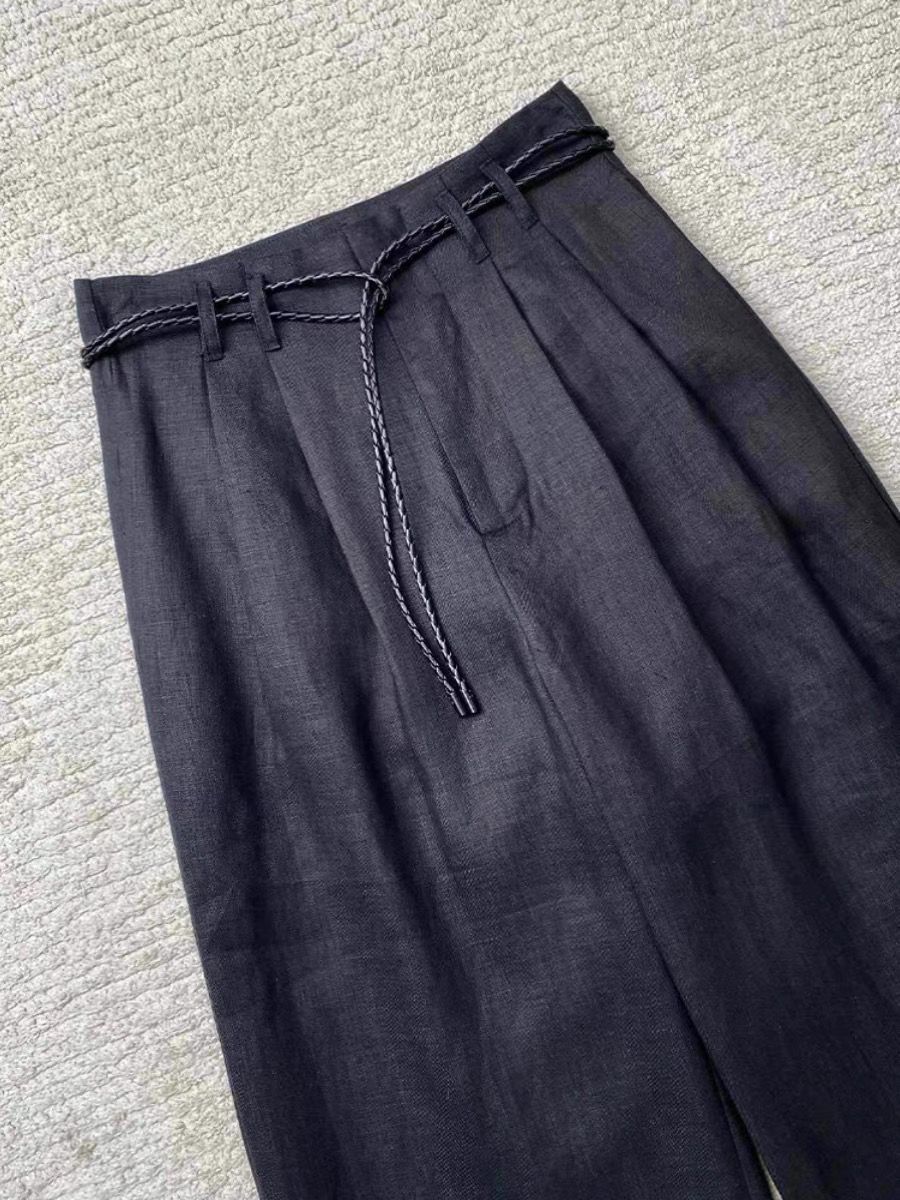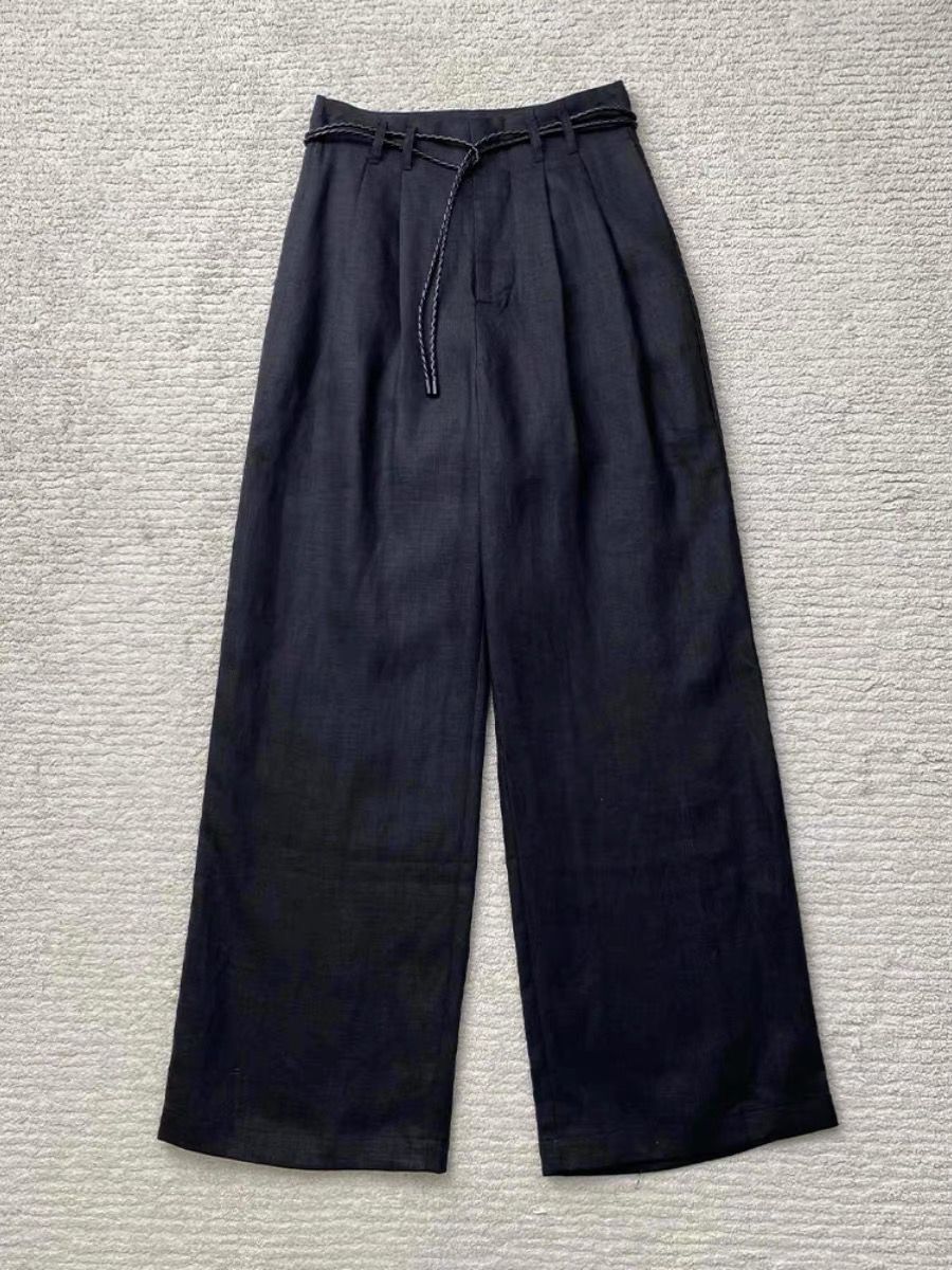 차오 파이어 추천! 오래 된 돈 바람 이완 느낌 ~ 블랙 린넨 와이드 레그 팬츠 여성용 드로 스트링 스트랩 캐주얼 걸레 팬츠스토어 가기
