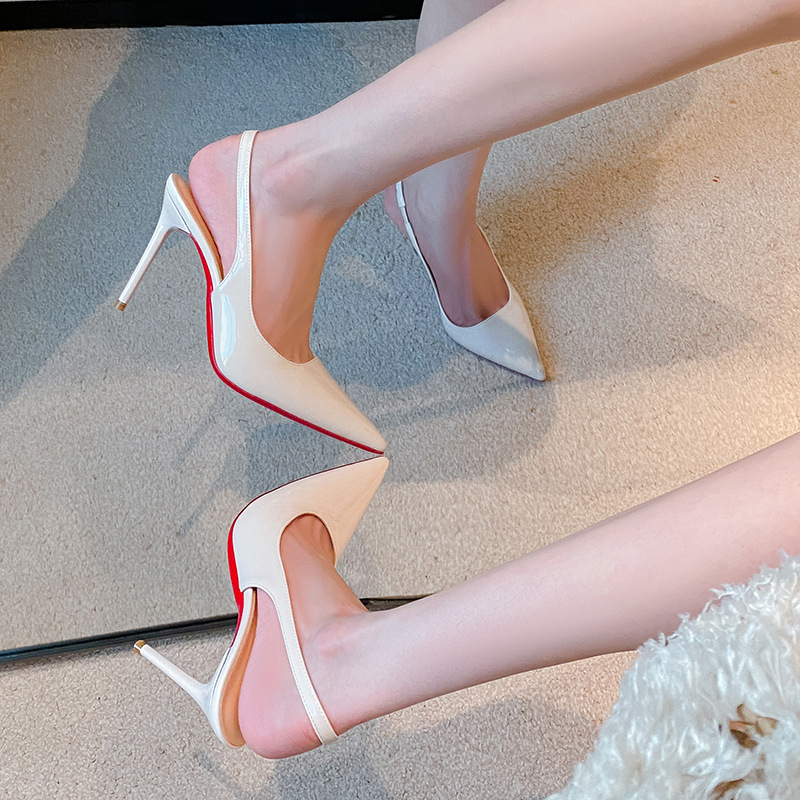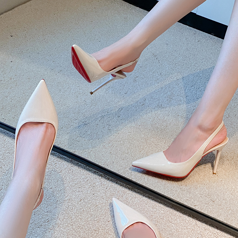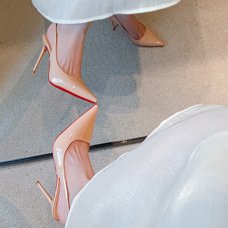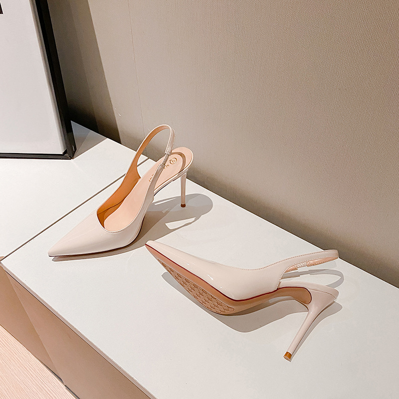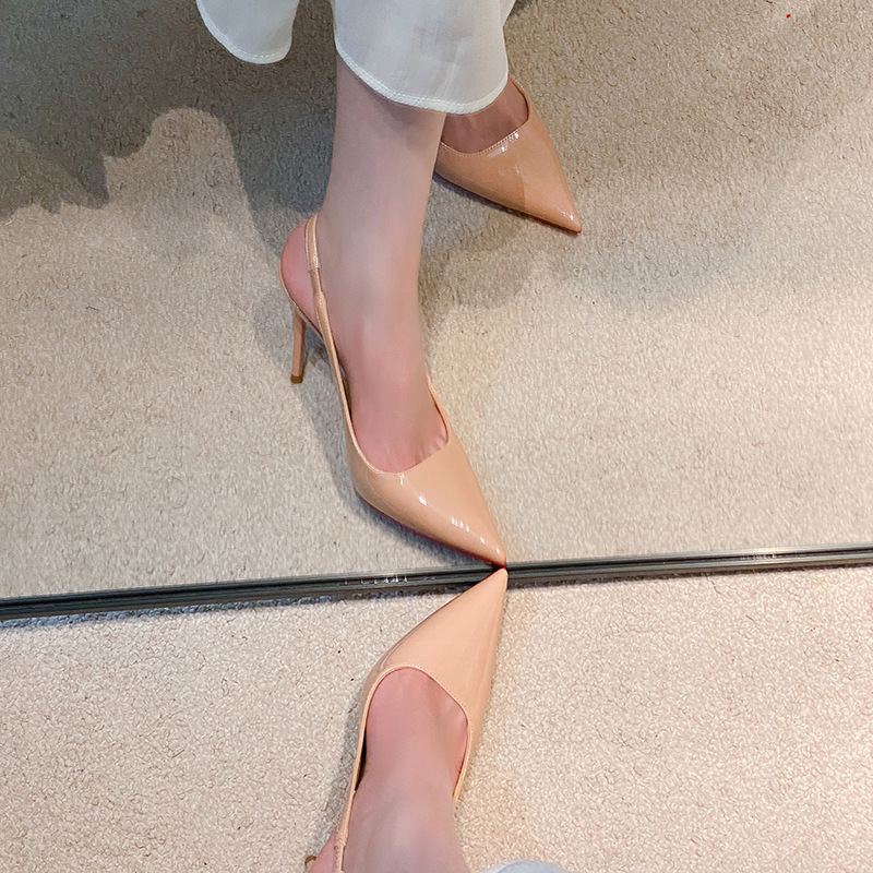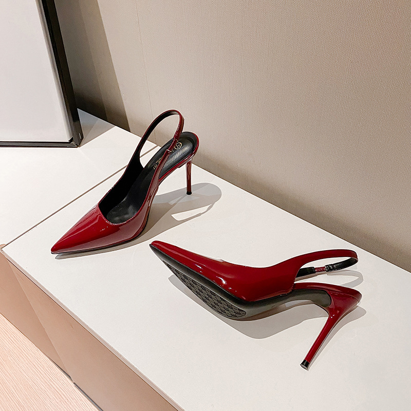 2025년형 뾰족코 블랙 섹시 래커 가죽 스트랩 샌들 여성용 편안한 하이힐스토어 가기