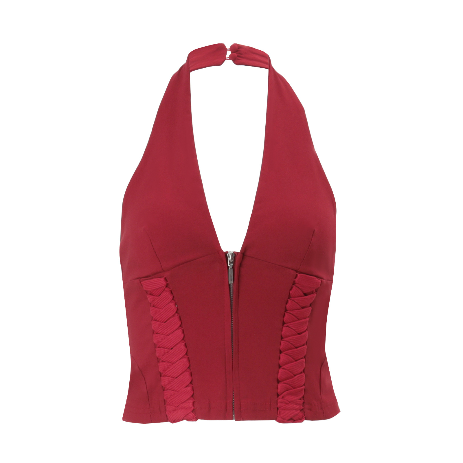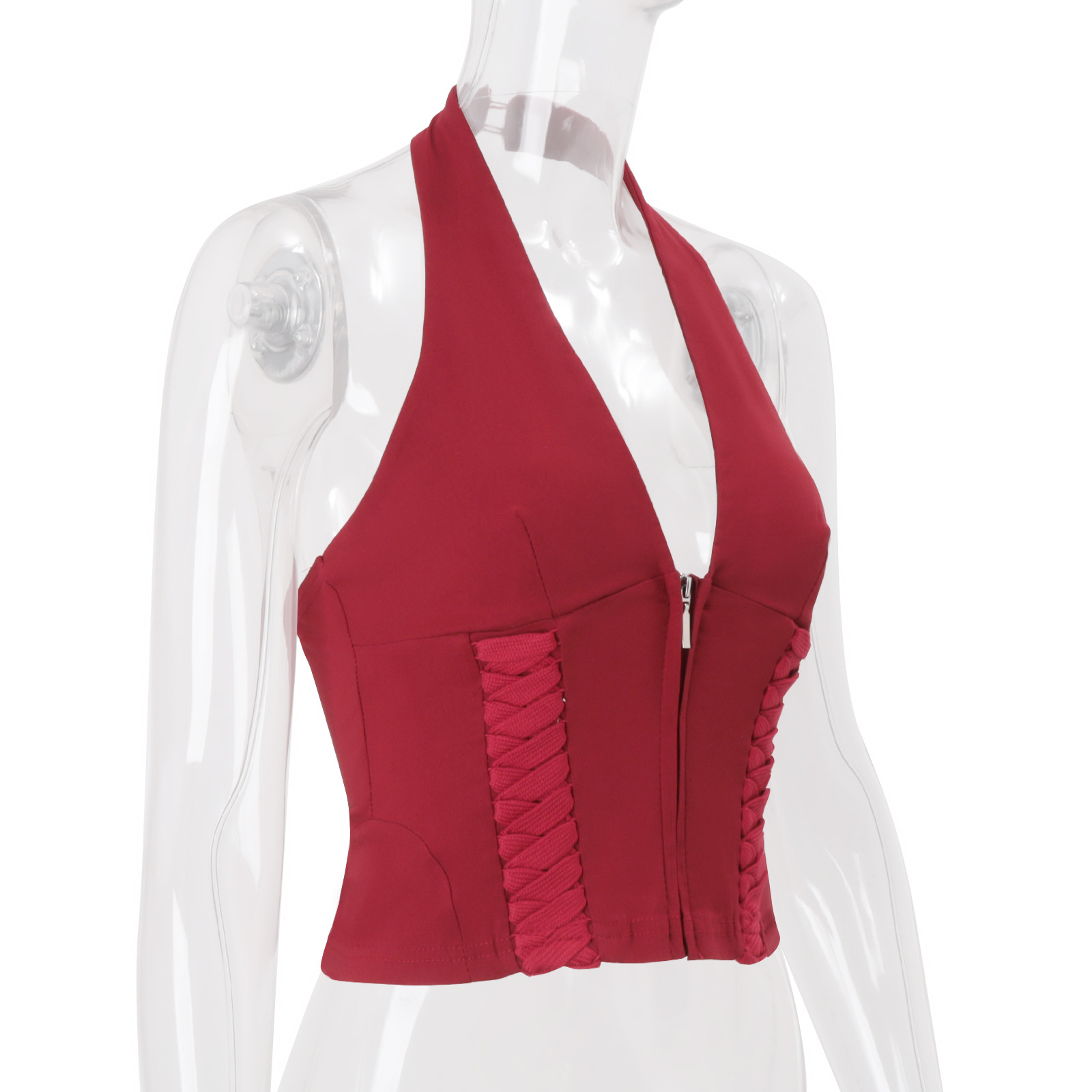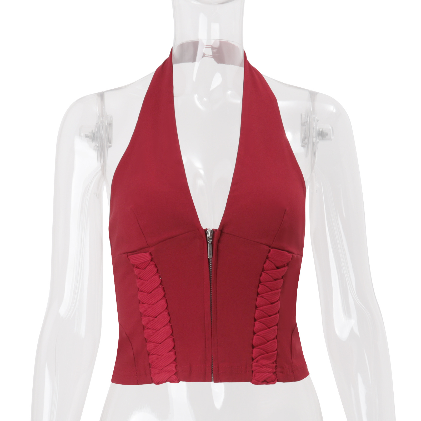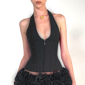같은 스타일의 뜨거운 소녀 목에 매달려있는 여자 2025 년 봄 새로운 유럽과 미국의 크로스 스트랩 디자인 짧은 조끼