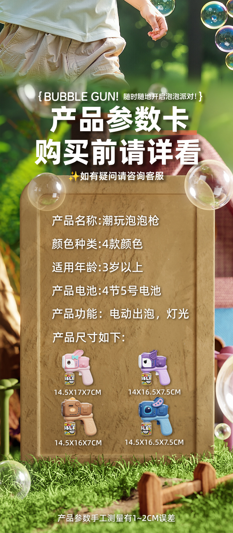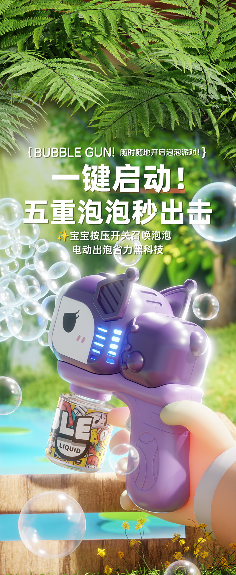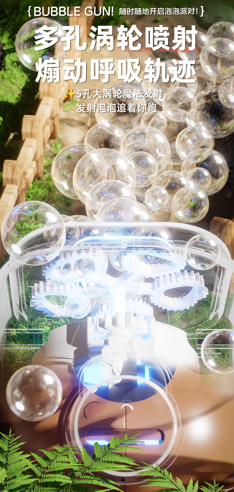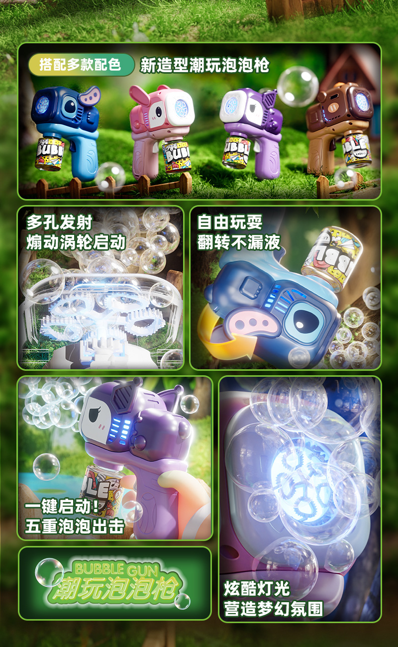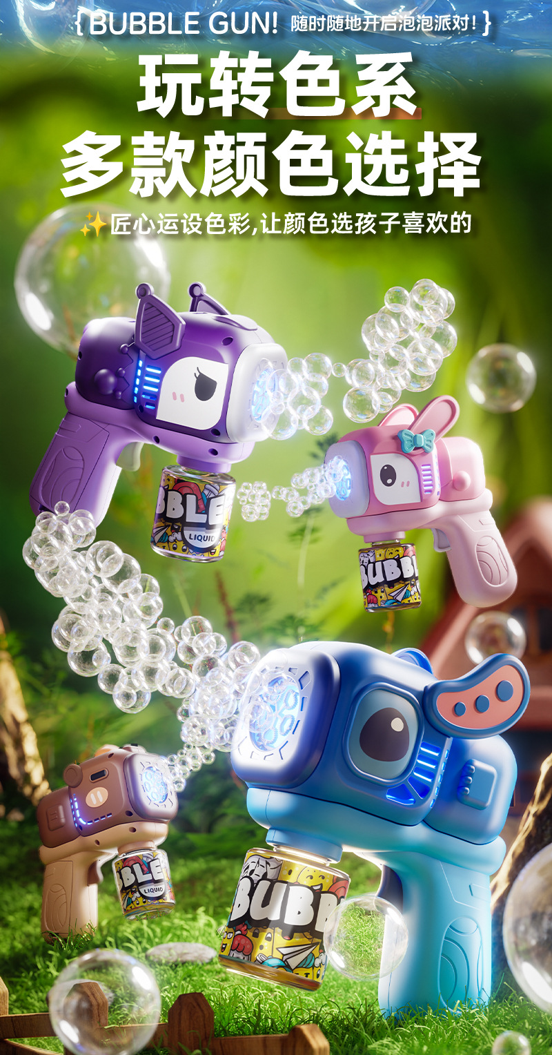 맞춤형 어린이 장난감 완전 자동 버블 건 소년과 소녀를위한 휴대용 다공성 아기 버블 건 야외 장난감스토어 가기