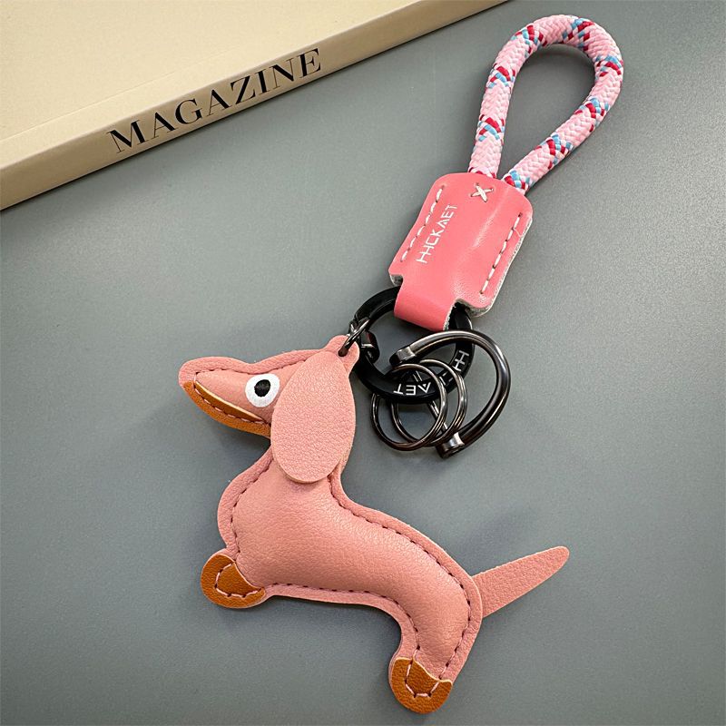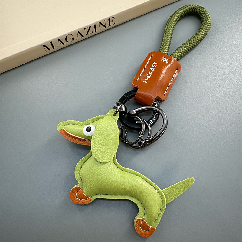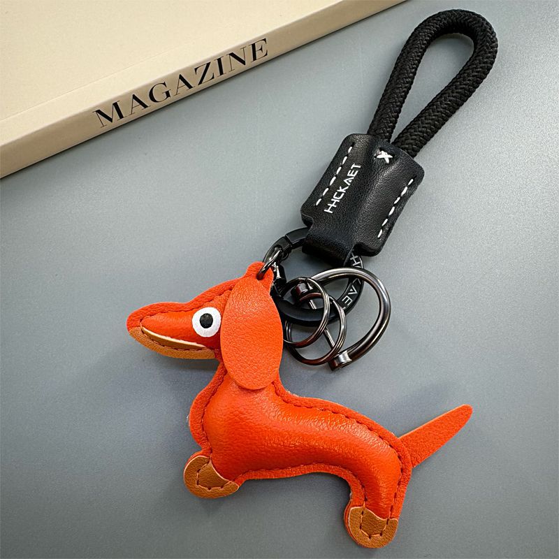 소시지 강아지 수제 정품 가죽 자동차 키 체인 펜던트 귀여운 크리 에이 티브 남성과 여성 끈 하이 엔드 절묘한 액세서리