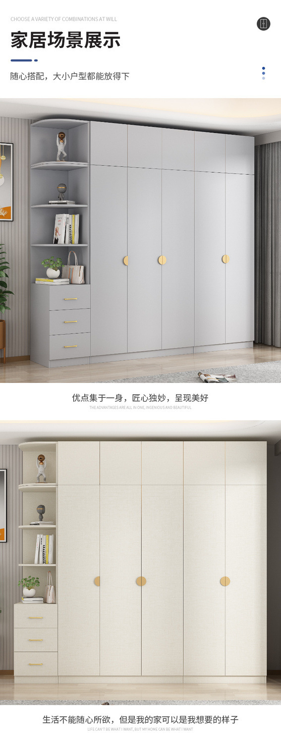 단단한 나무 더블 도어 크림 스타일 옷장 가정용 침실 현대 간단한 다기능 조립 옷장 더블 도어 옷장스토어 가기