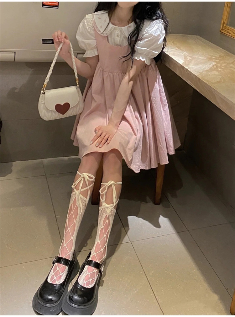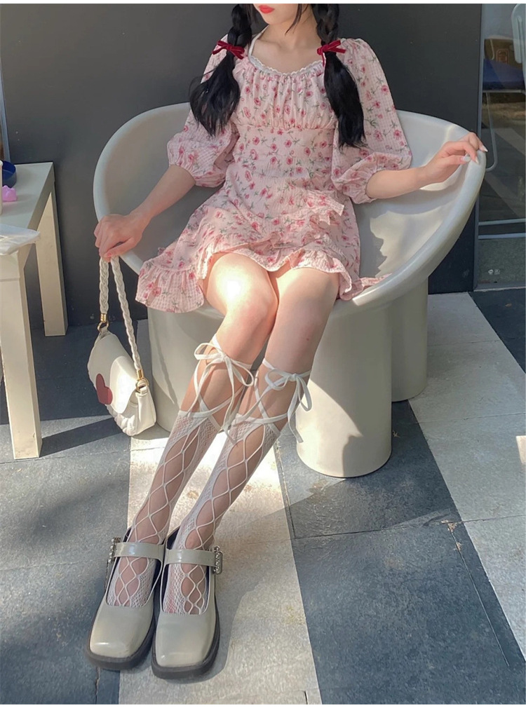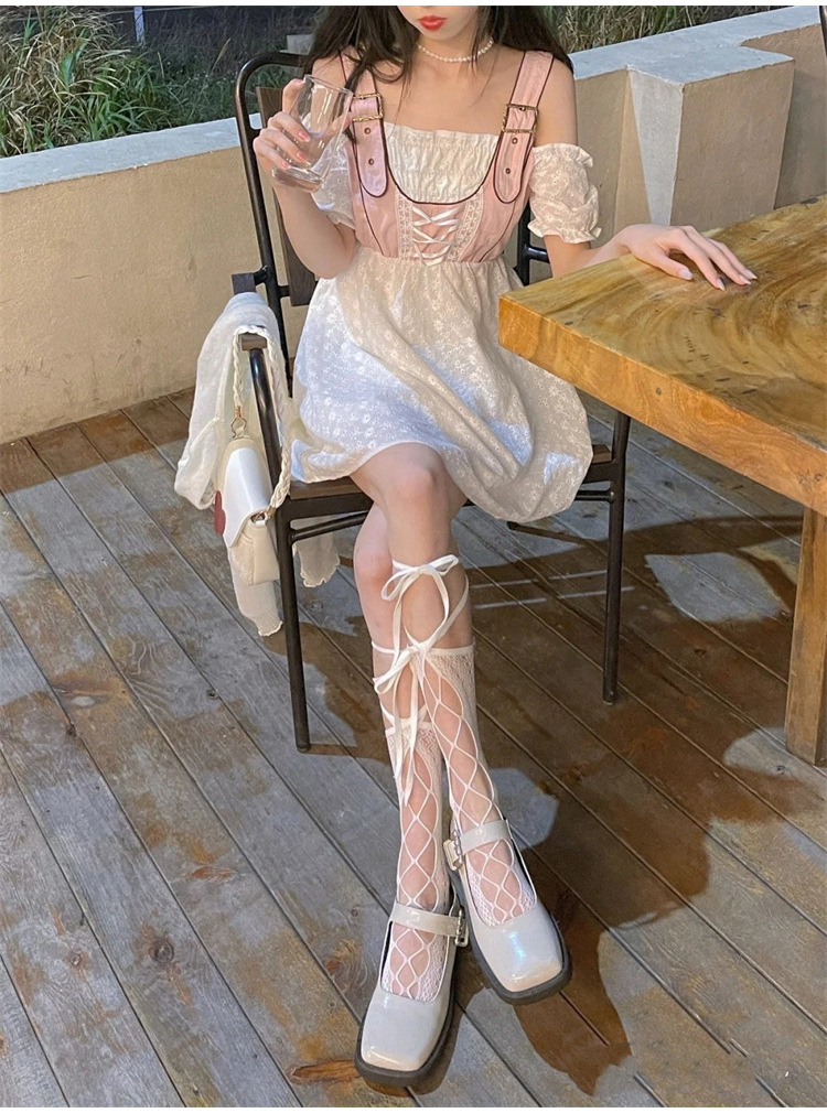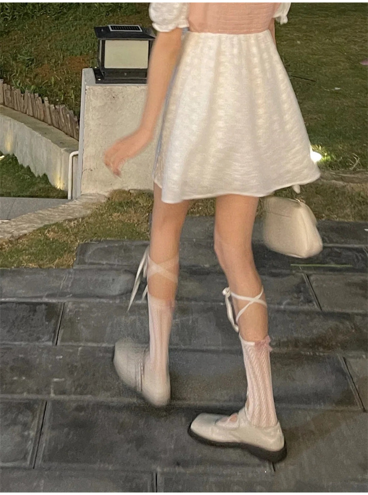스위트 화이트 스트랩 컷 아웃 레이스 자카드 Jk 송아지 양말 일본식 인 로리타 걸스 중견 양말