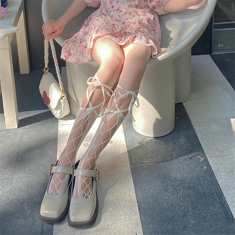 스위트 화이트 스트랩 컷 아웃 레이스 자카드 Jk 송아지 양말 일본식 인 로리타 걸스 중견 양말스토어 가기