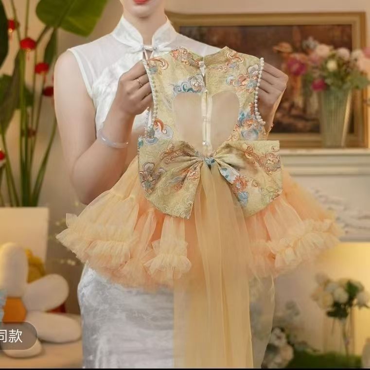 여자 공주 어린 소녀 여름 2025 아기 새 원피스 세련된 어린이 푹신한 치마 청삼 치마