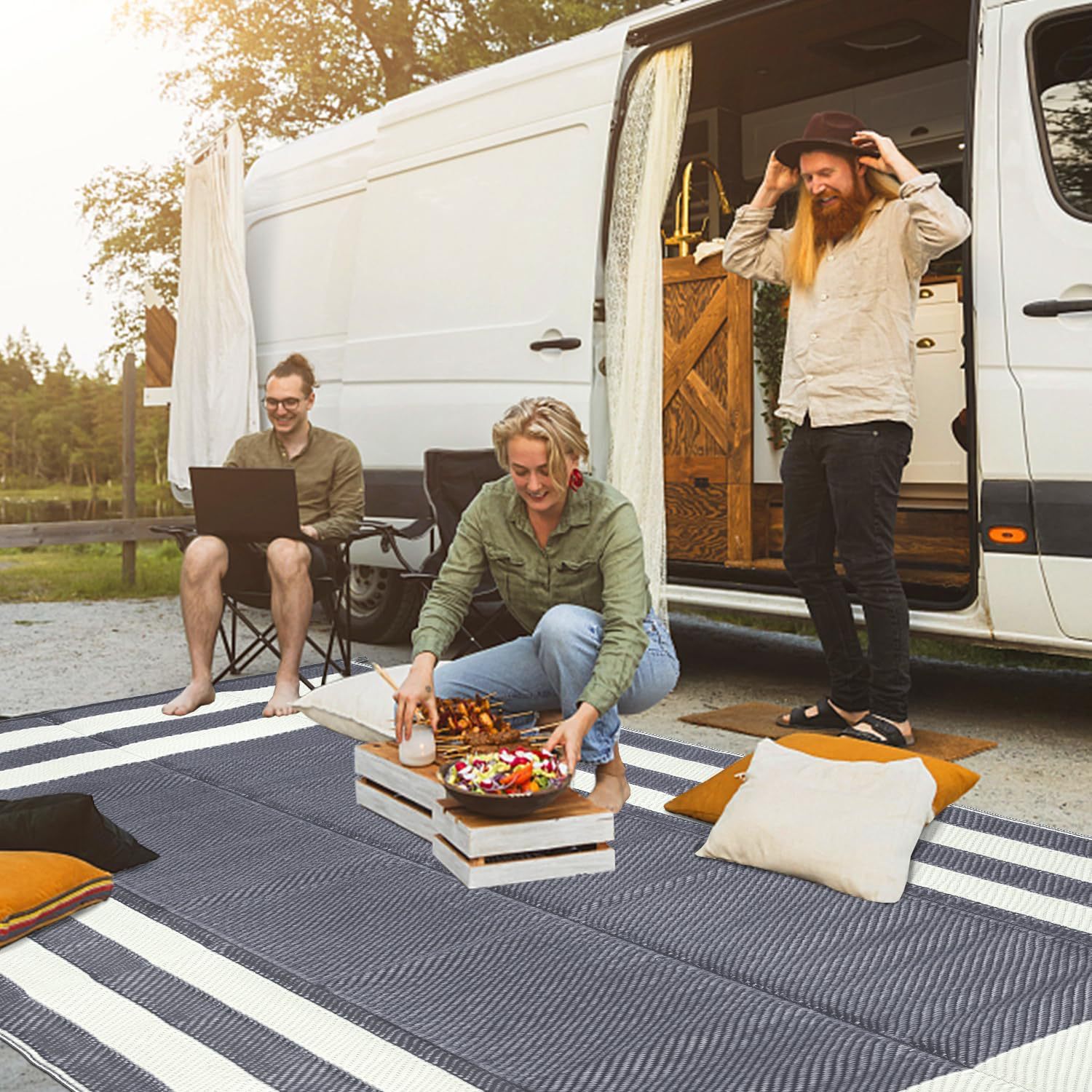 국경 간 야외 피크닉 매트 접이식 PP 플라스틱 해변 좌석 접이식 짠 매트 캠핑 바베큐 두꺼운 방습 바닥 매트