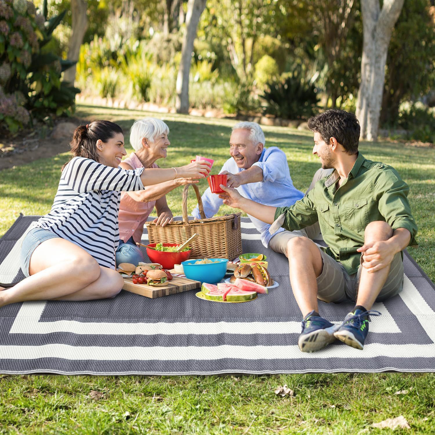 국경 간 야외 피크닉 매트 접이식 PP 플라스틱 해변 좌석 접이식 짠 매트 캠핑 바베큐 두꺼운 방습 바닥 매트스토어 가기