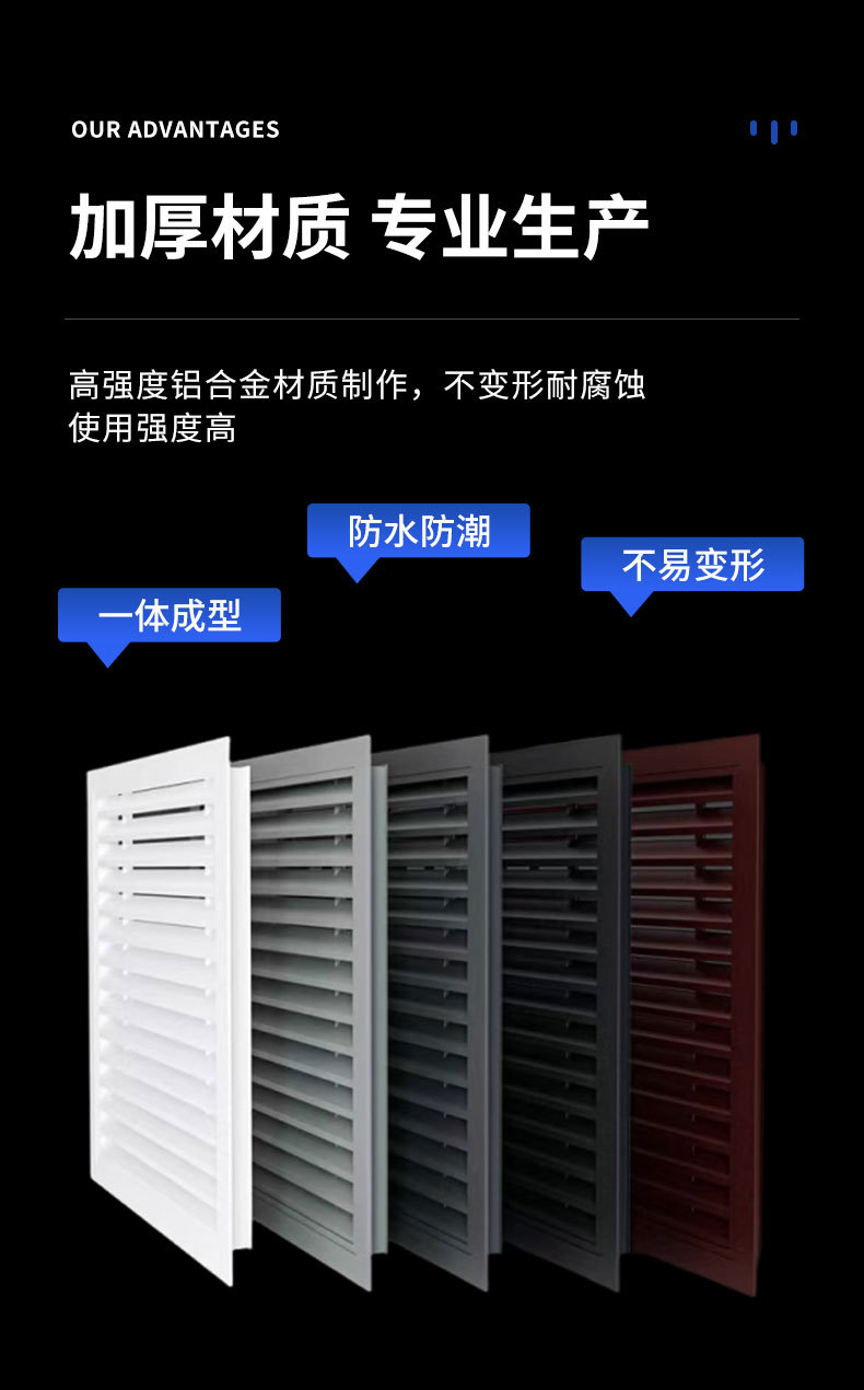알루미늄 합금 루버 통풍구 외벽 방수 공기 배출구 장식 중앙 에어컨 통기성 배기 및 환기 그릴