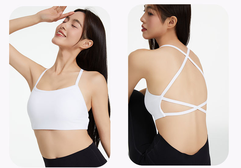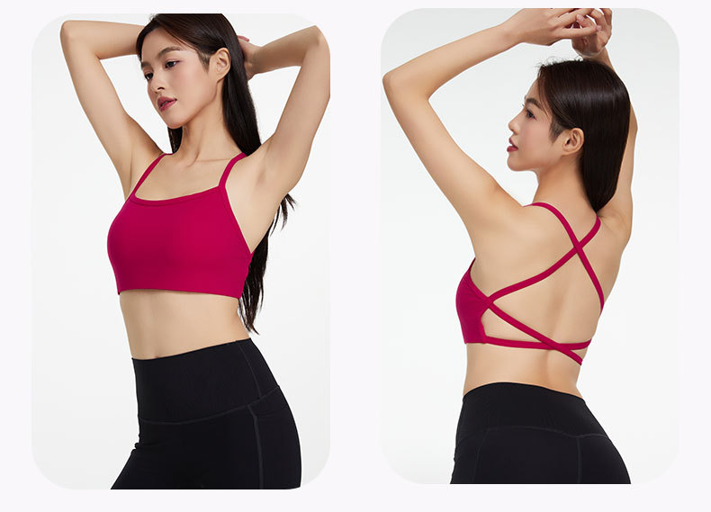 새로운 크로스 뷰티 백 스포츠 속옷 여성 여름 요가 조끼 피트니스 브래지어가 가슴 매트 요가 옷과 함께 제공됩니다.스토어 가기