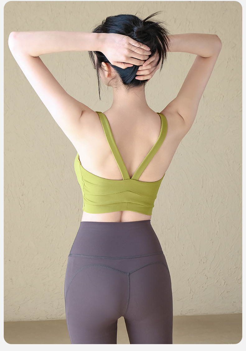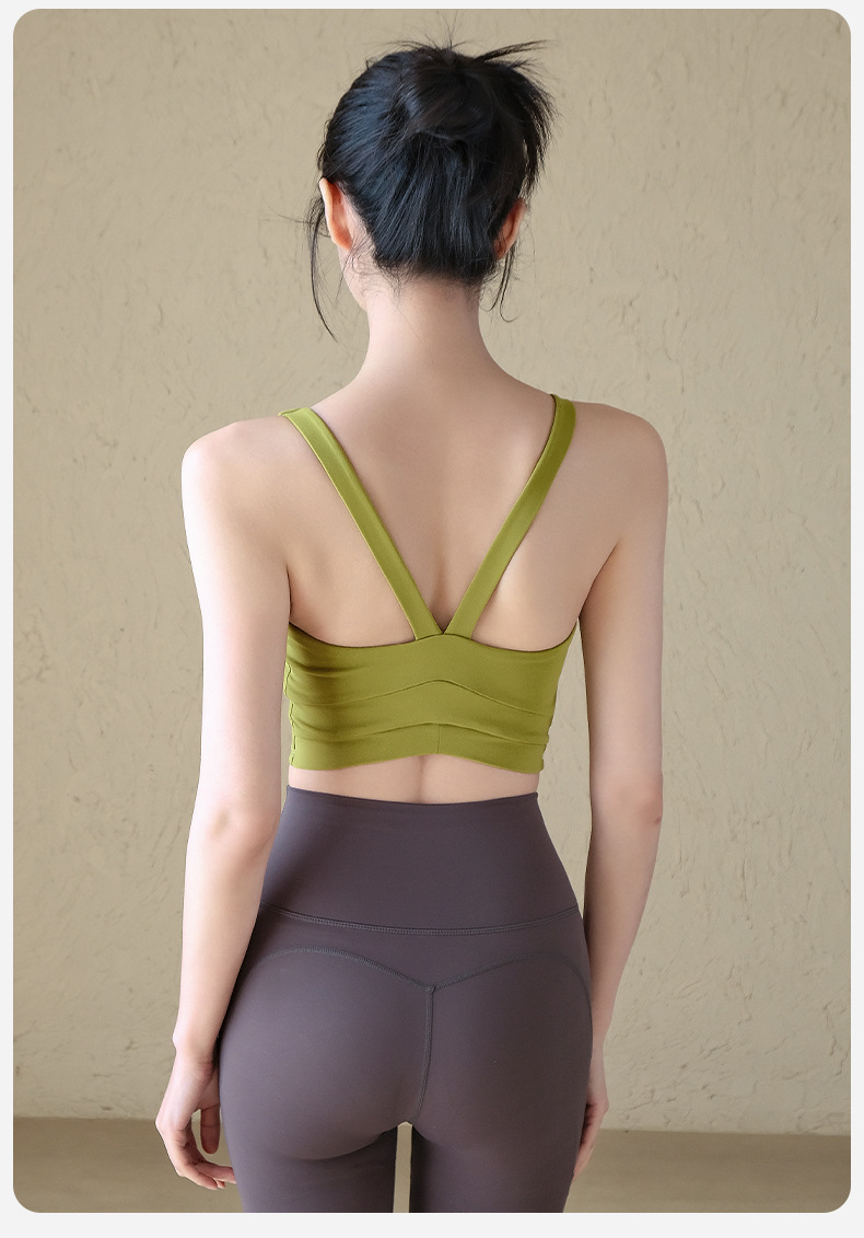 원피스 고정 컵 요가 조끼 여성의 여름 꽉 슬림 스포츠 속옷 V 백 피트니스 브래지어