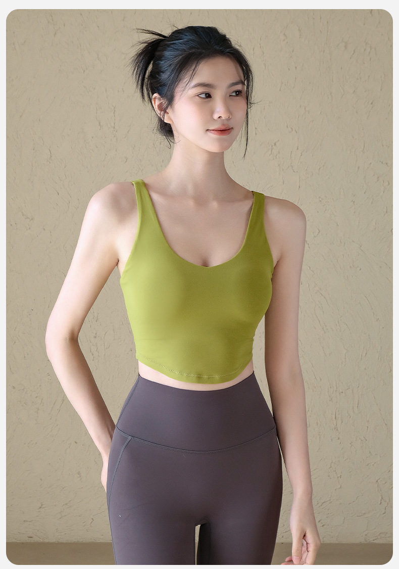 원피스 고정 컵 요가 조끼 여성의 여름 꽉 슬림 스포츠 속옷 V 백 피트니스 브래지어스토어 가기