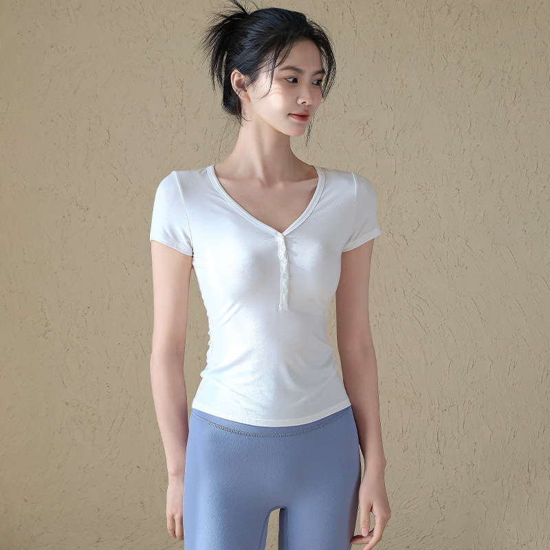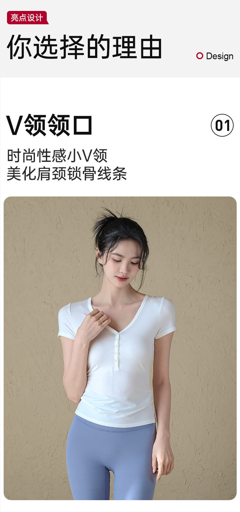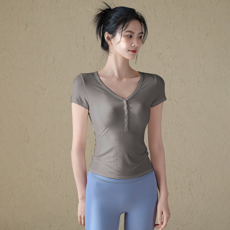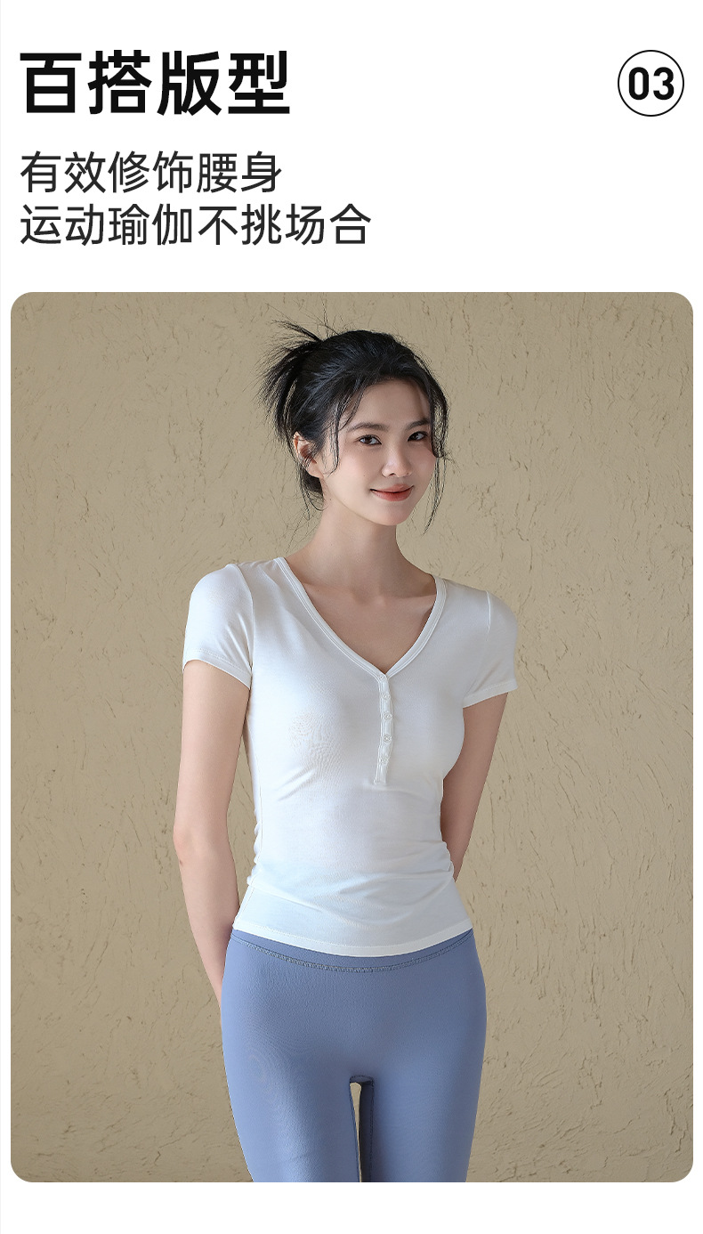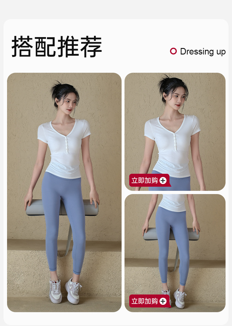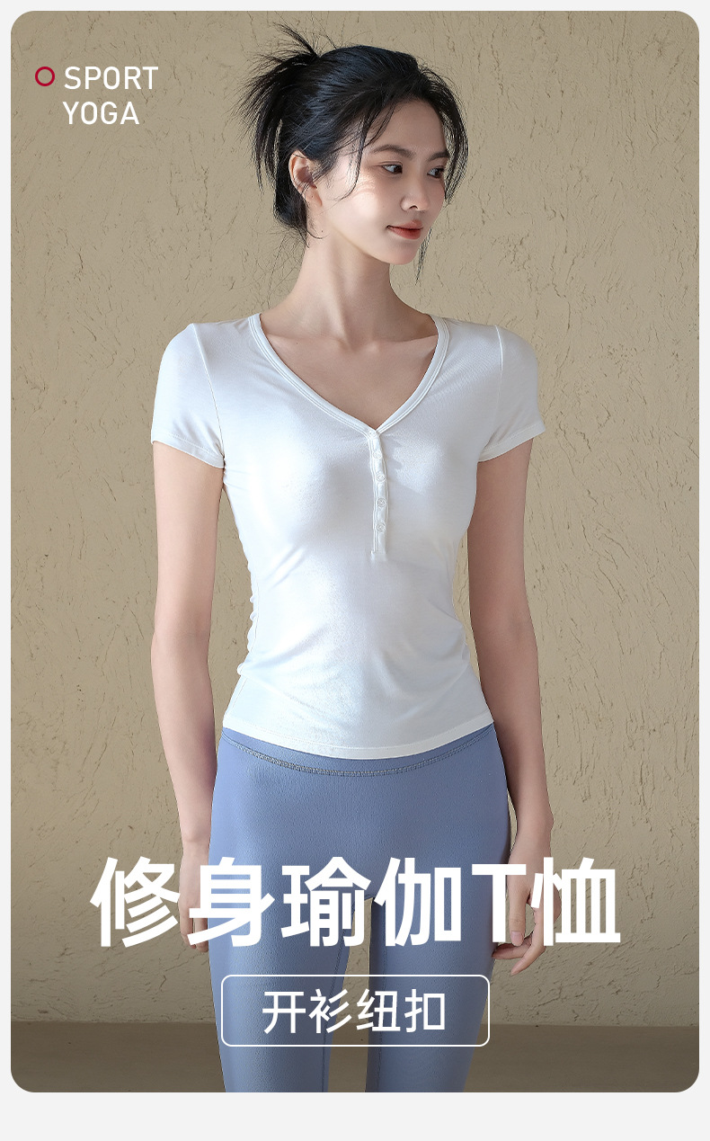 요가 반팔 최고 여자 2025 여름 새로운 슬리밍 올 매치 버튼 스포츠 티셔츠 달리기 훈련 피트니스 옷스토어 가기