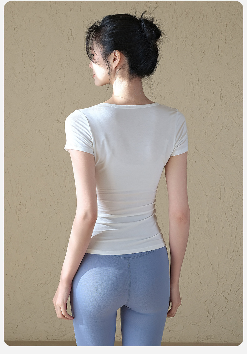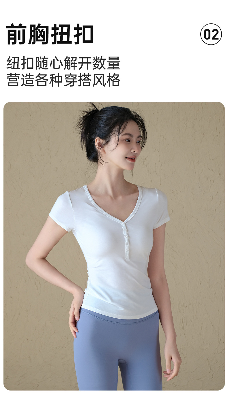 요가 반팔 최고 여자 2025 여름 새로운 슬리밍 올 매치 버튼 스포츠 티셔츠 달리기 훈련 피트니스 옷