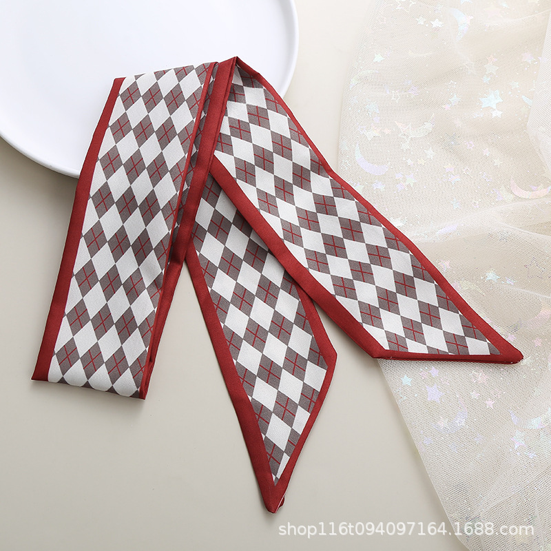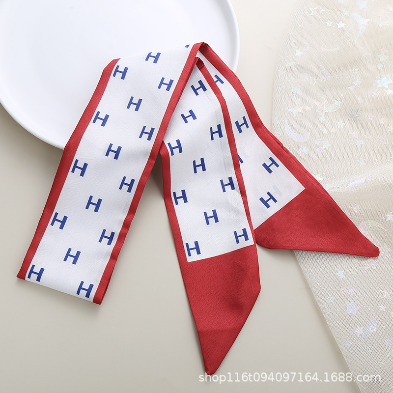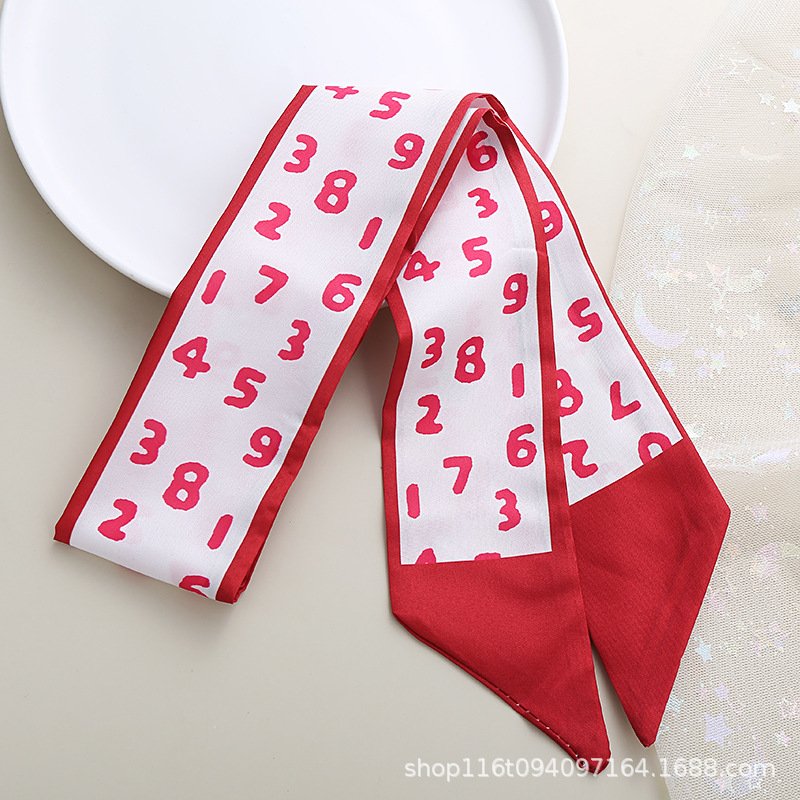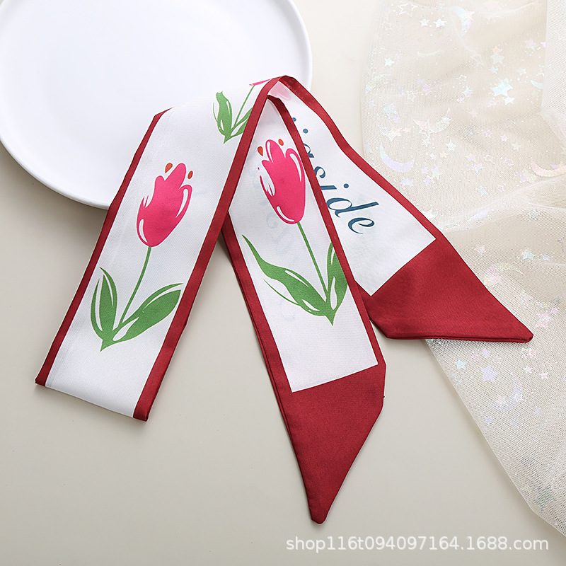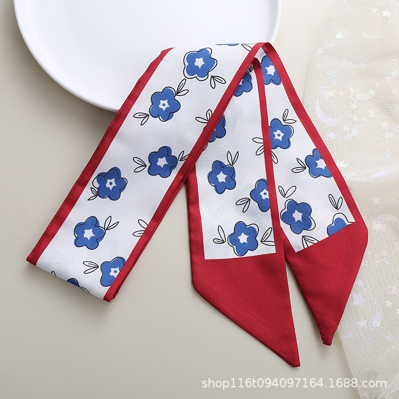 기질 작은 스카프 빨간 인쇄 머리 액세서리 꽃 리본 긴 작은 실크 스카프 다기능 넥타이 가방 활