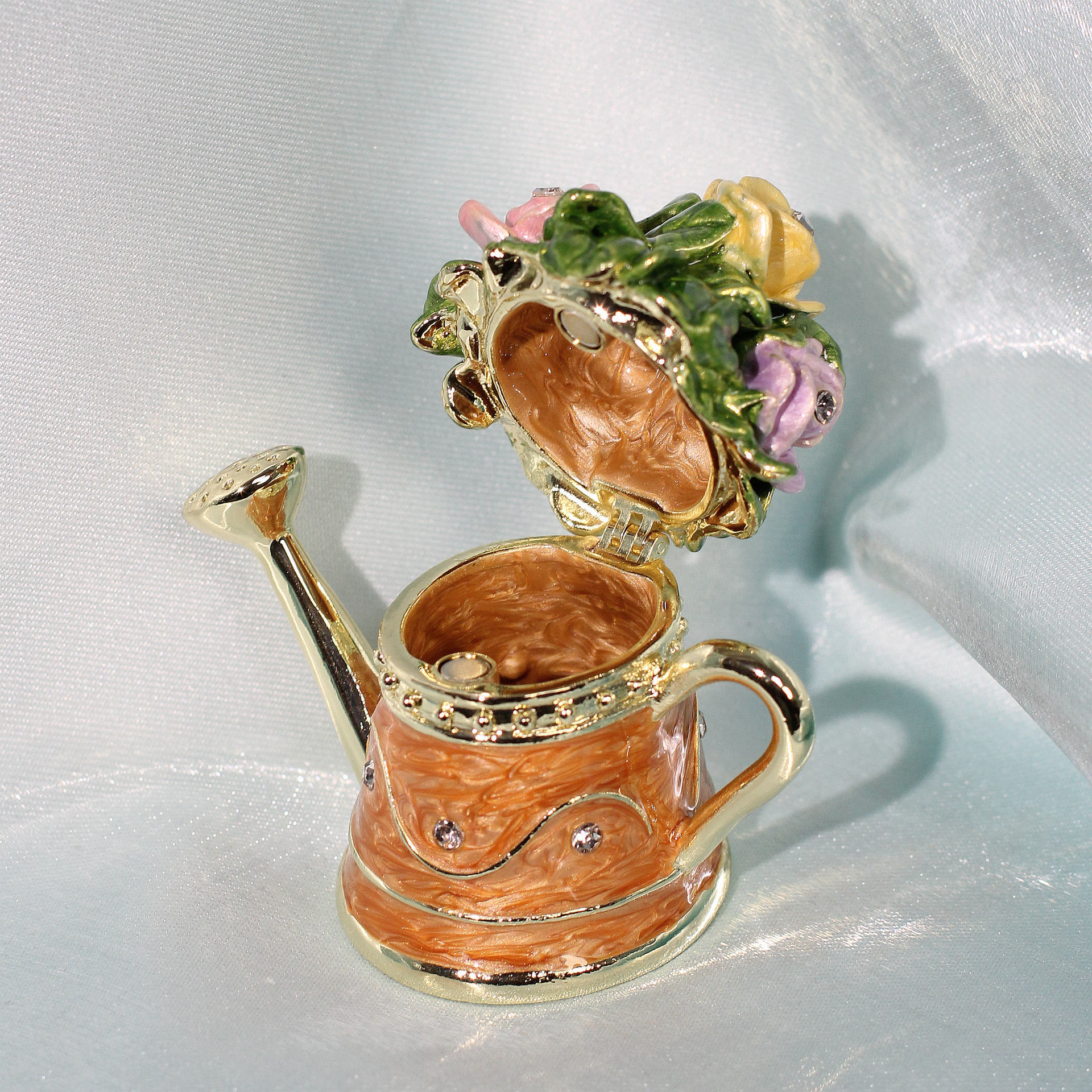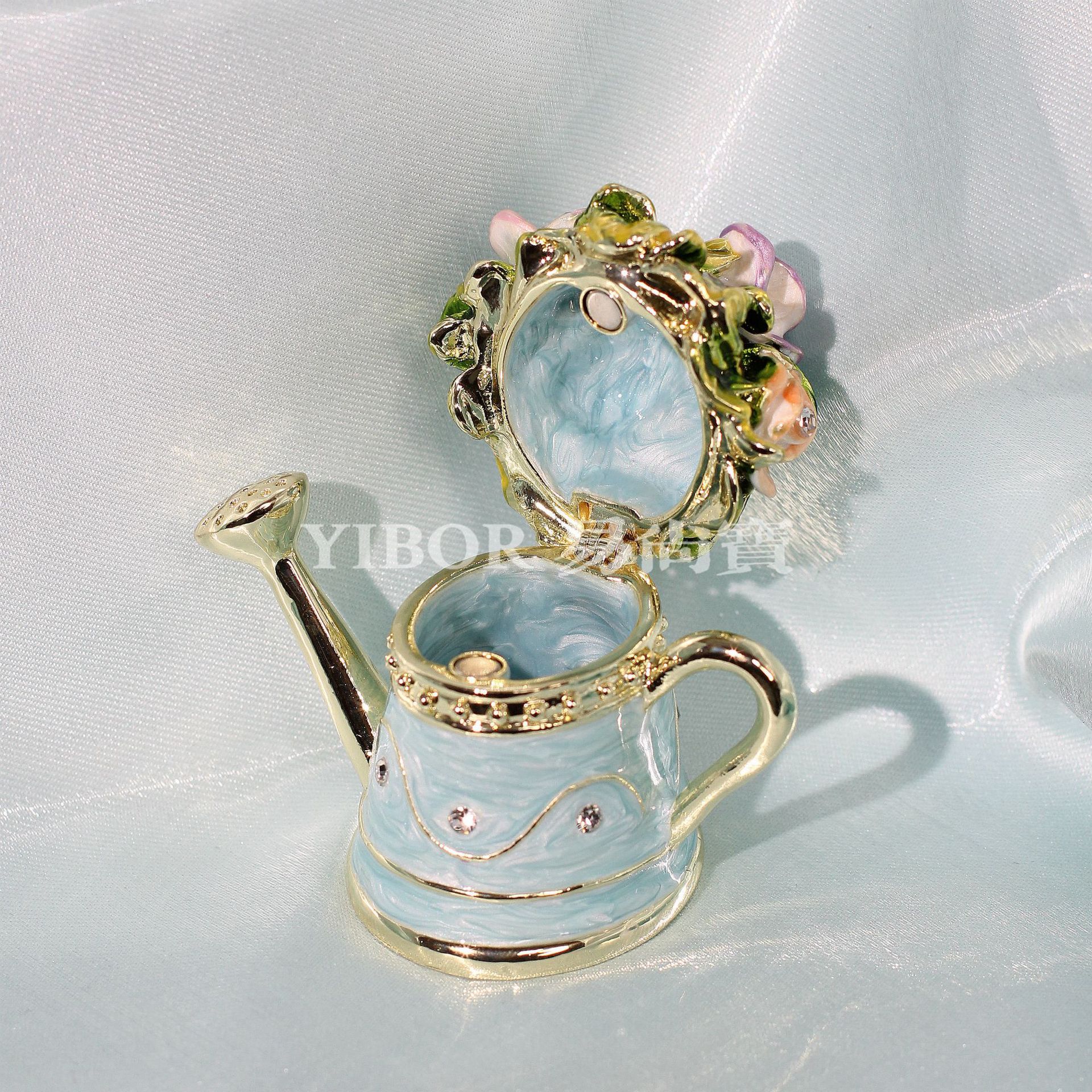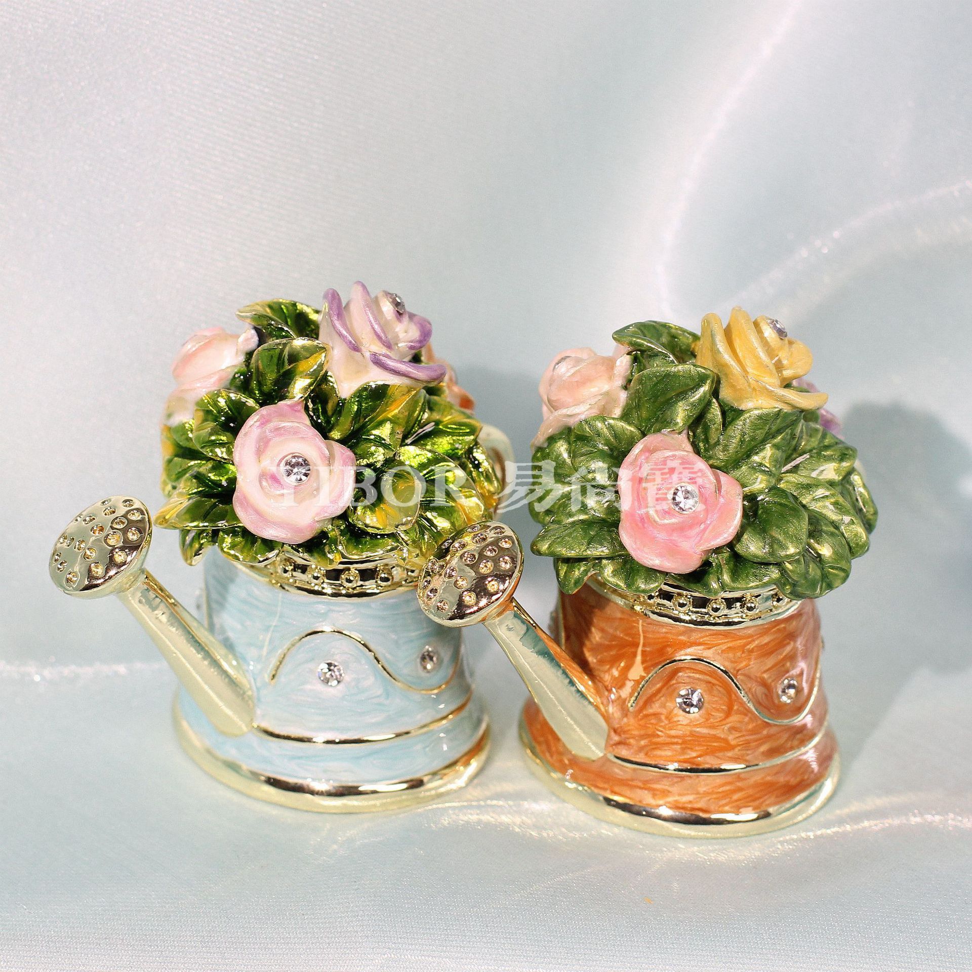 아마존 뜨거운 판매 에나멜 보석 상자 꽃 주전자 샤워 높은 색상 가치 절묘한 금속 장식 상자 홈 장식