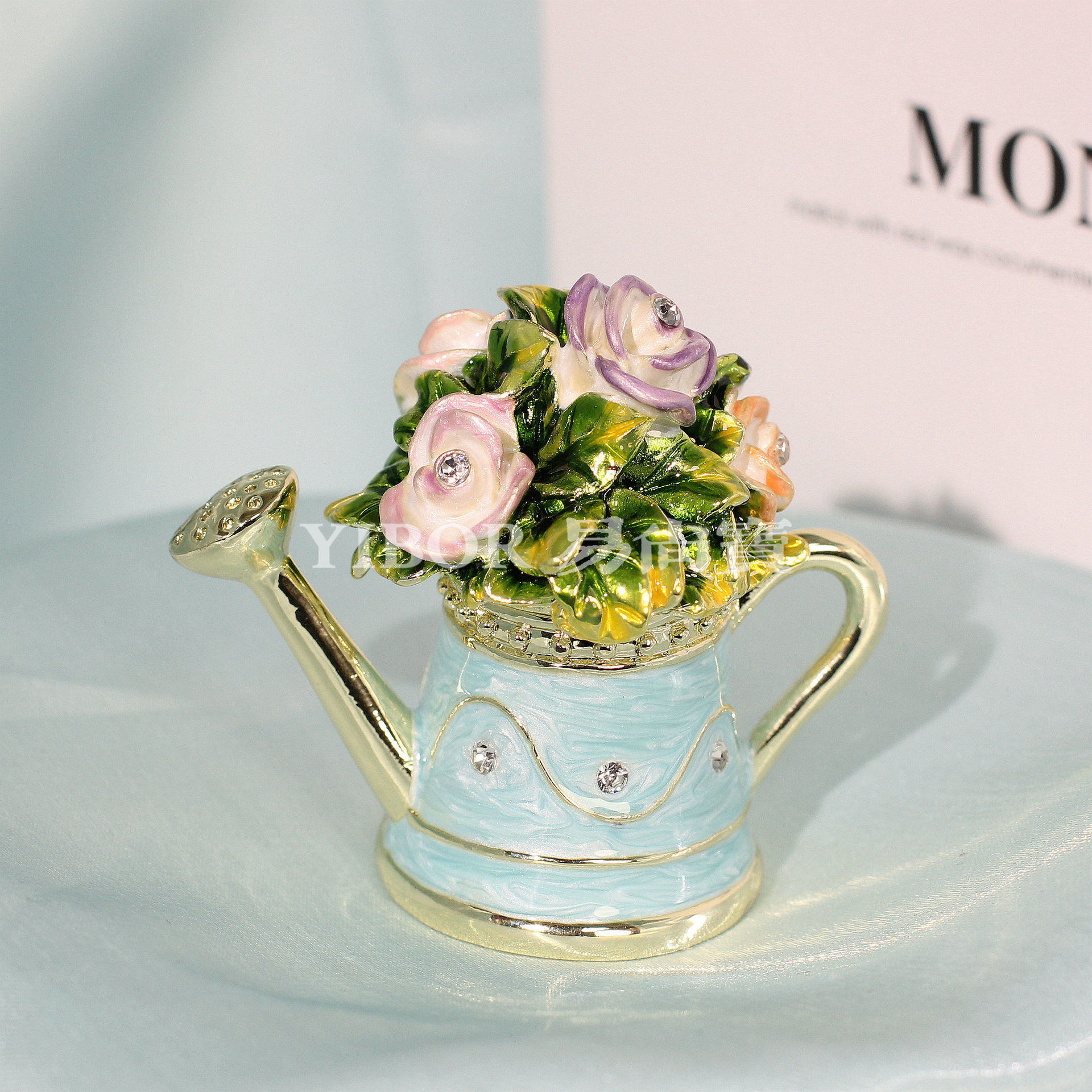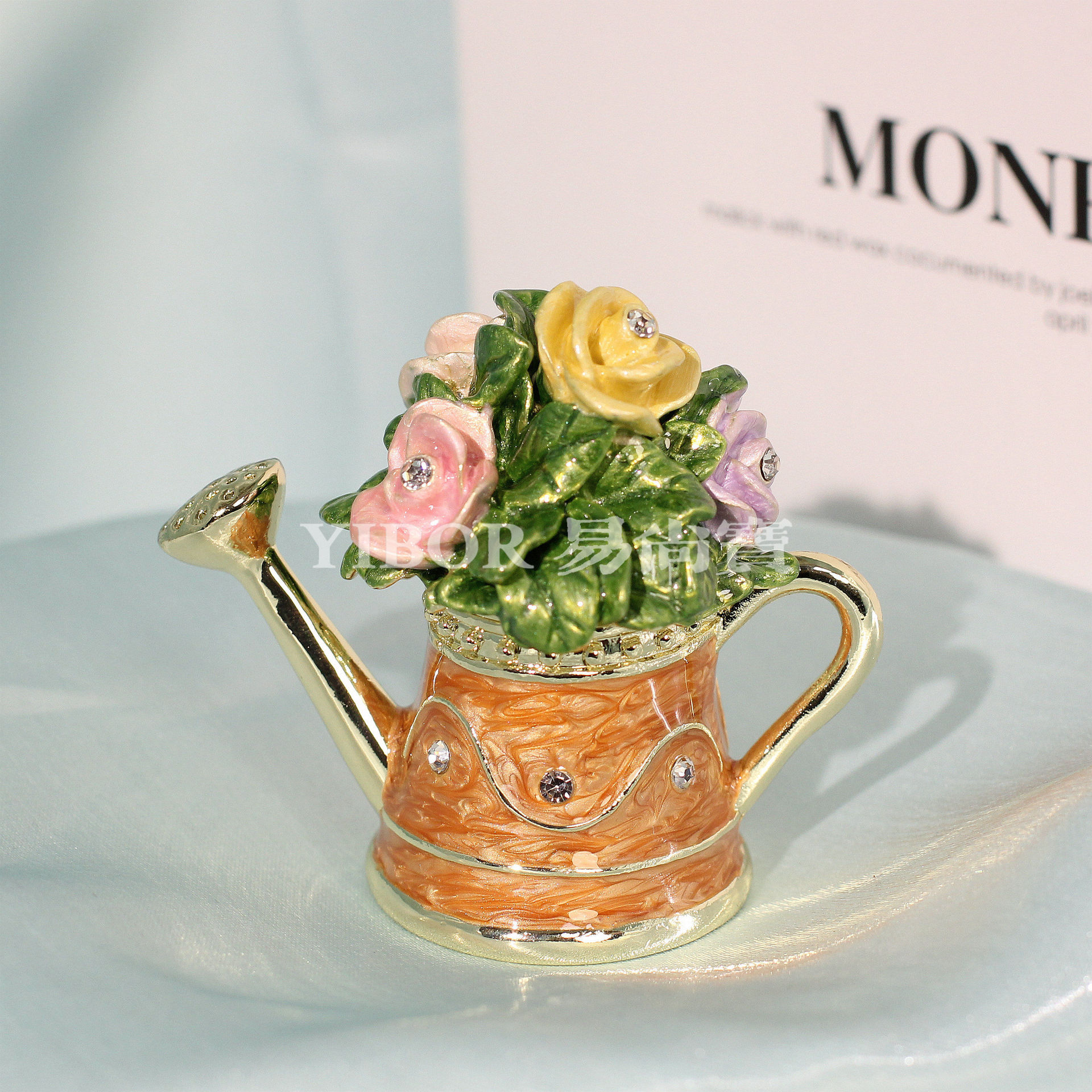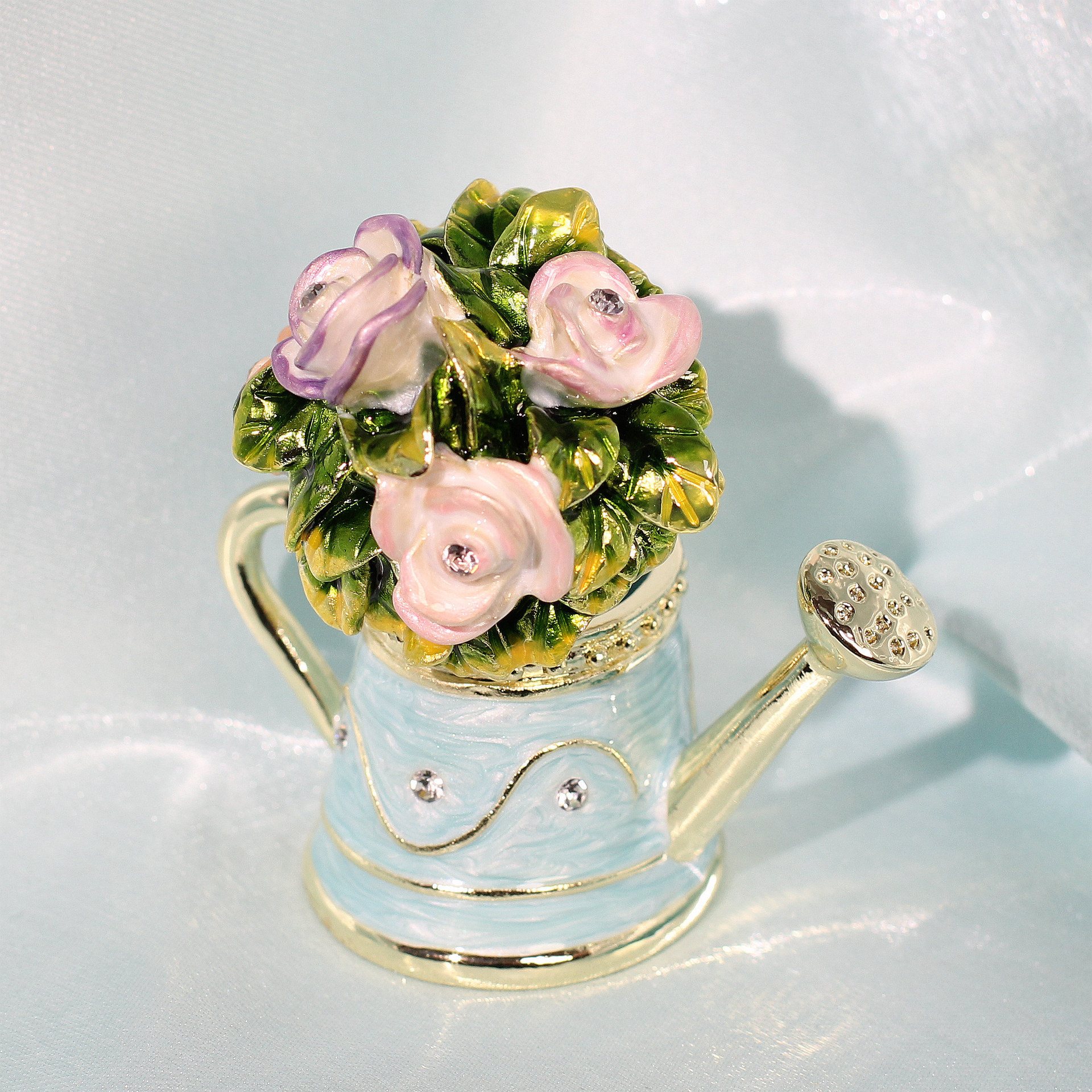 아마존 뜨거운 판매 에나멜 보석 상자 꽃 주전자 샤워 높은 색상 가치 절묘한 금속 장식 상자 홈 장식