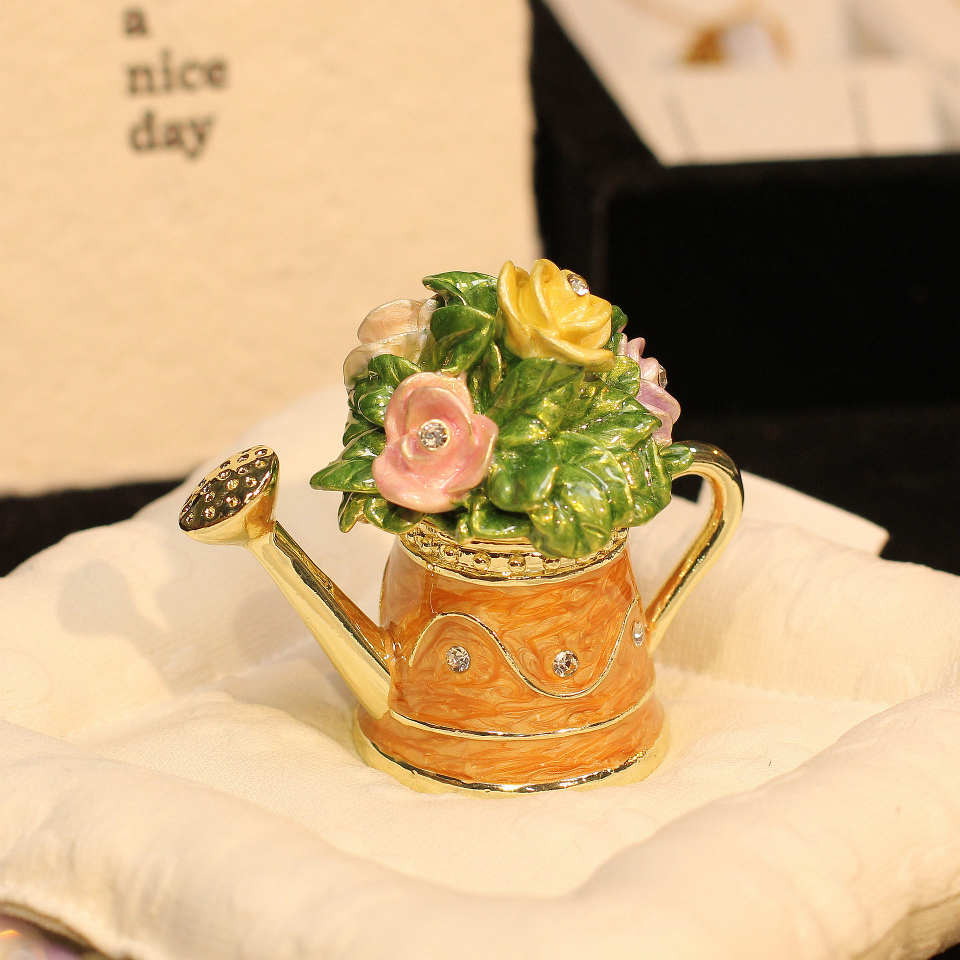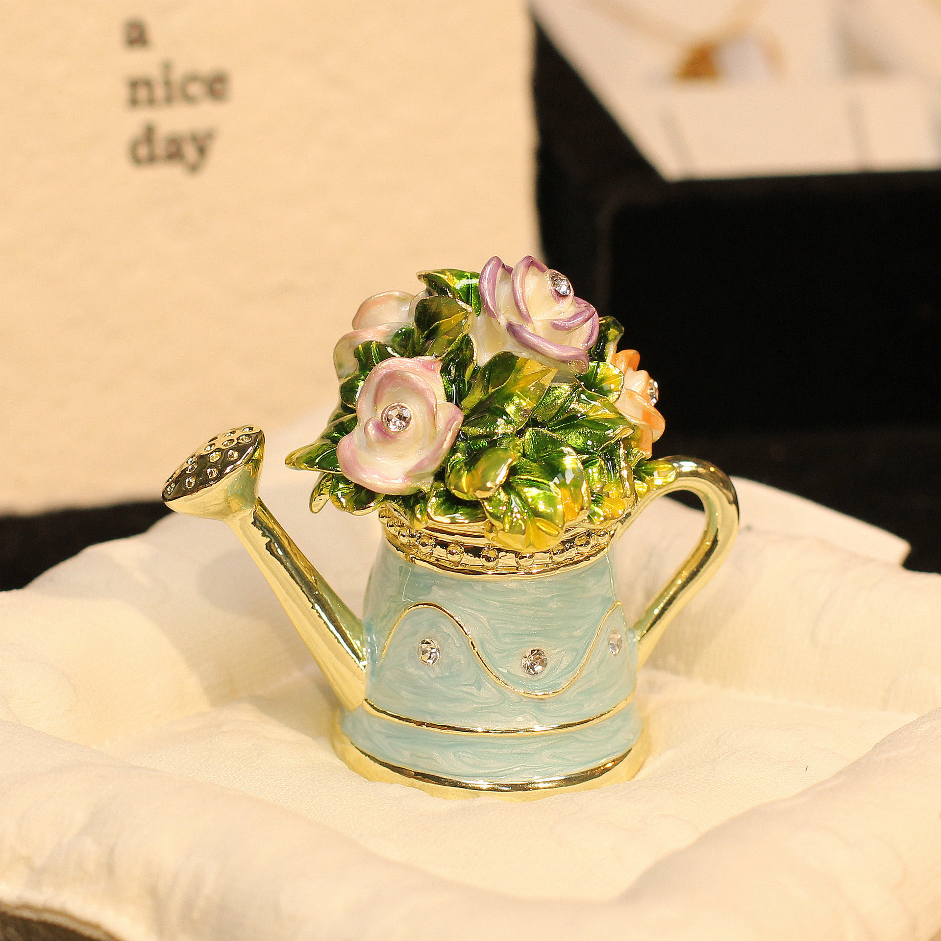 아마존 뜨거운 판매 에나멜 보석 상자 꽃 주전자 샤워 높은 색상 가치 절묘한 금속 장식 상자 홈 장식스토어 가기