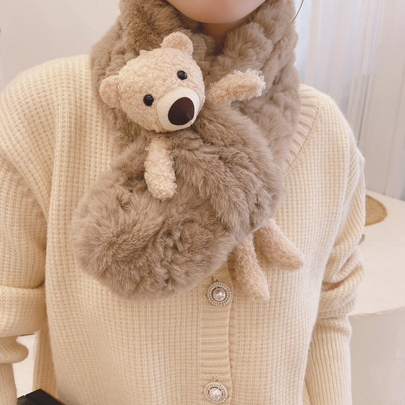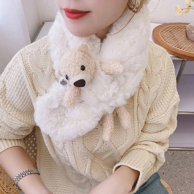 곰 스카프 여성의 겨울 귀여운 소녀 Ins 한국식 올매치 따뜻한 양털 봉제 봄과 가을 학생 스카프 목스토어 가기