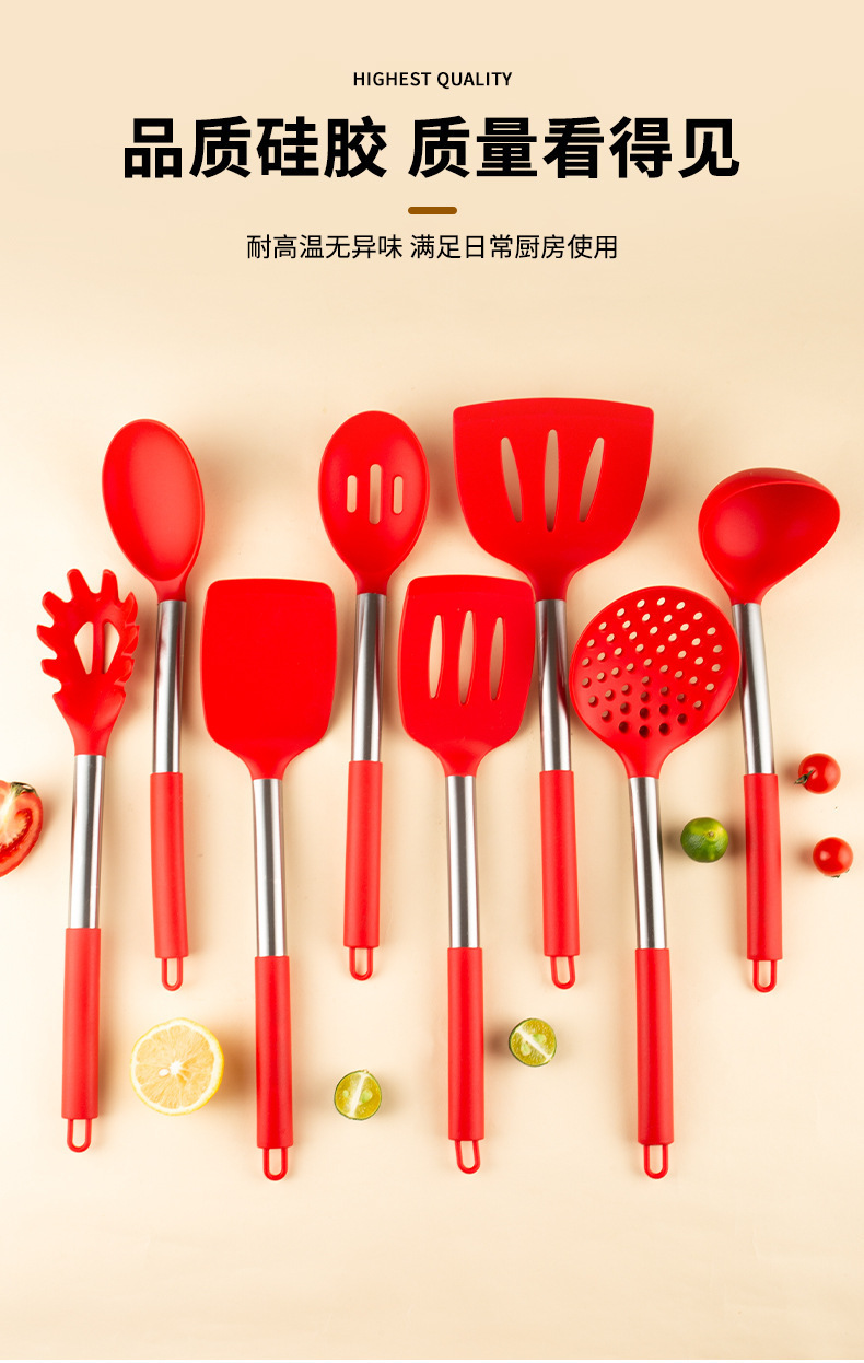 스테인레스 스틸 튜브 핸들 실리콘 주방 용품 주방 요리 스푼 주걱 베이킹 도구 보관통 주방 도구 세트 재고 있음스토어 가기