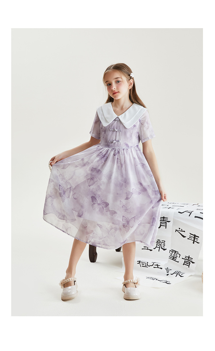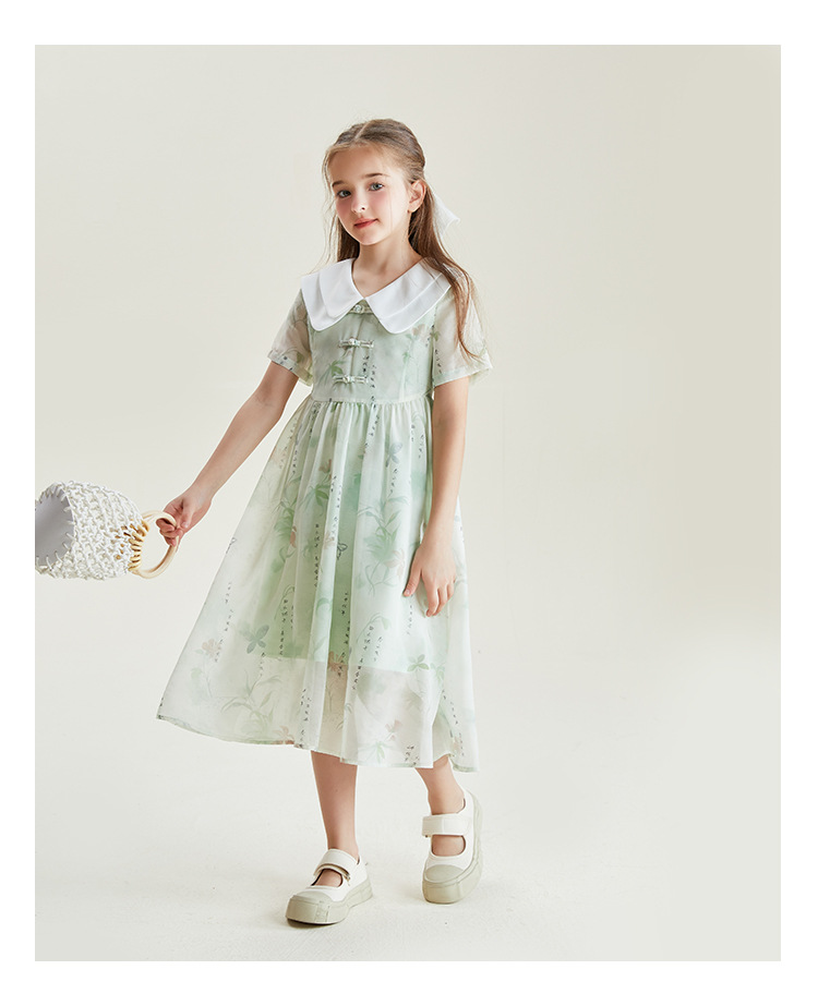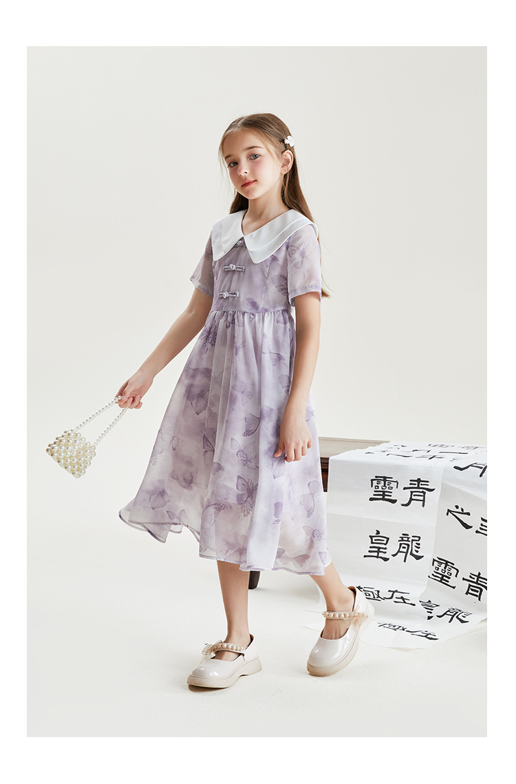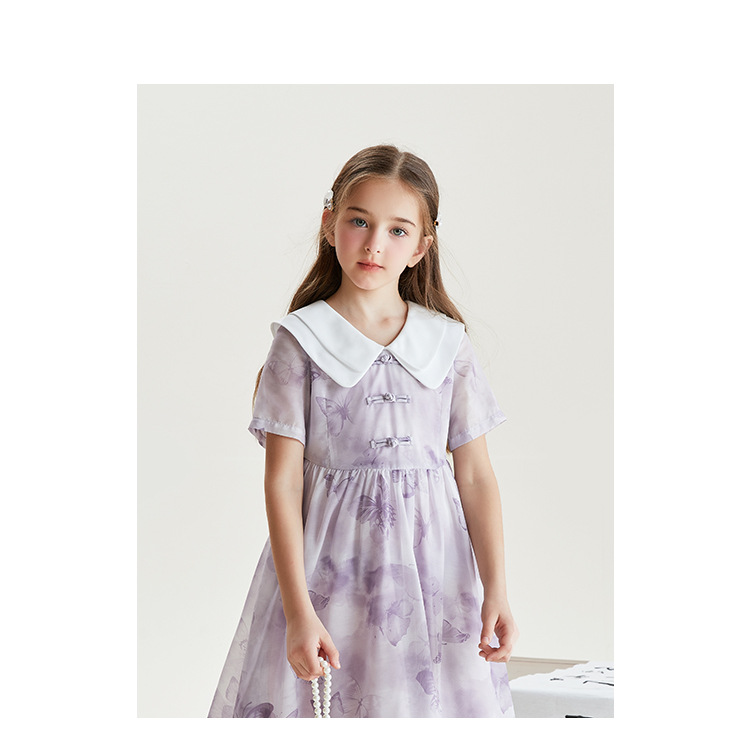베티 걸스 여름 새로운 중국 스타일 국가 스타일 짧은 소매 원피스 2025 새로운 여름 어린이 서양 스타일 쉬폰 스커트