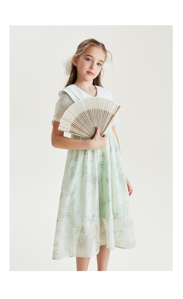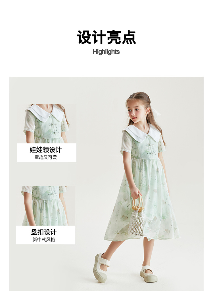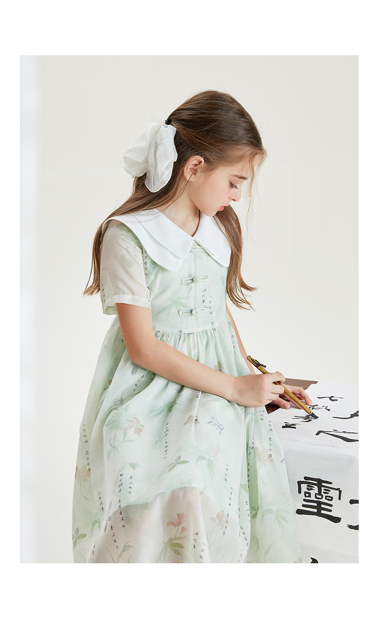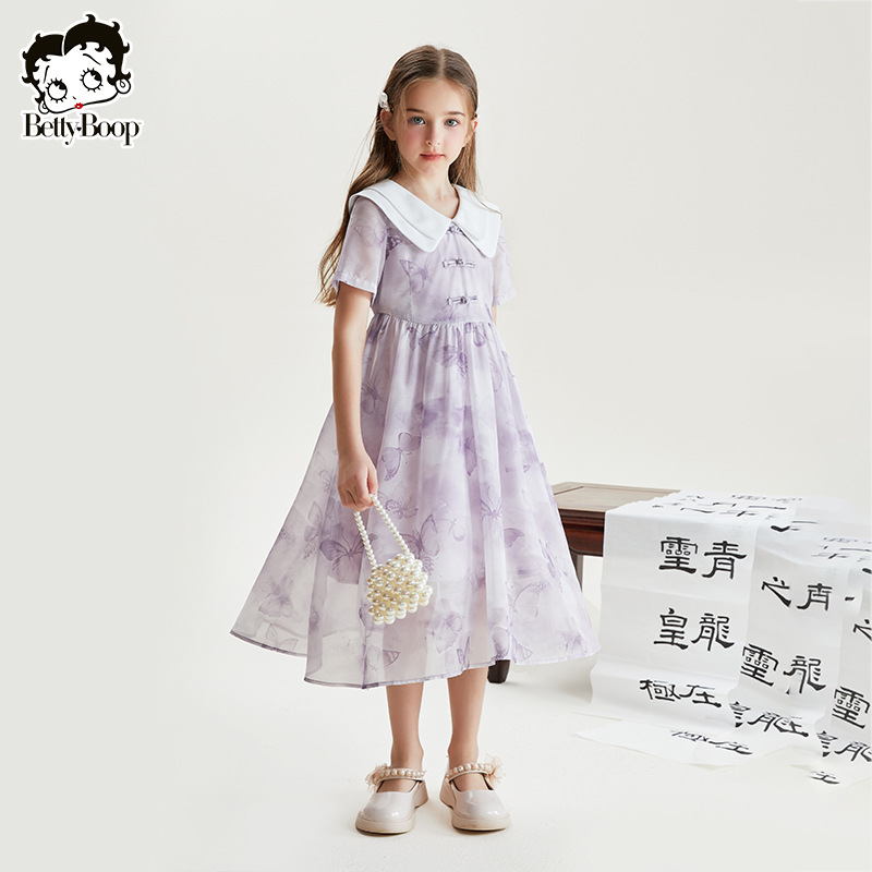 베티 걸스 여름 새로운 중국 스타일 국가 스타일 짧은 소매 원피스 2025 새로운 여름 어린이 서양 스타일 쉬폰 스커트