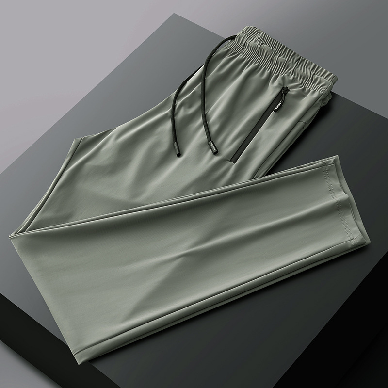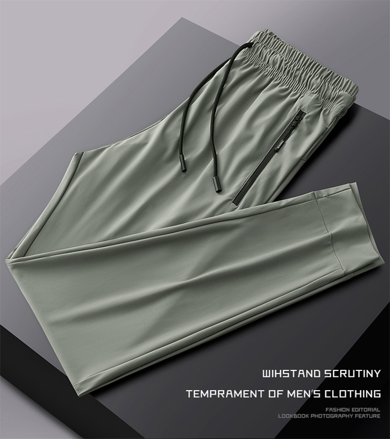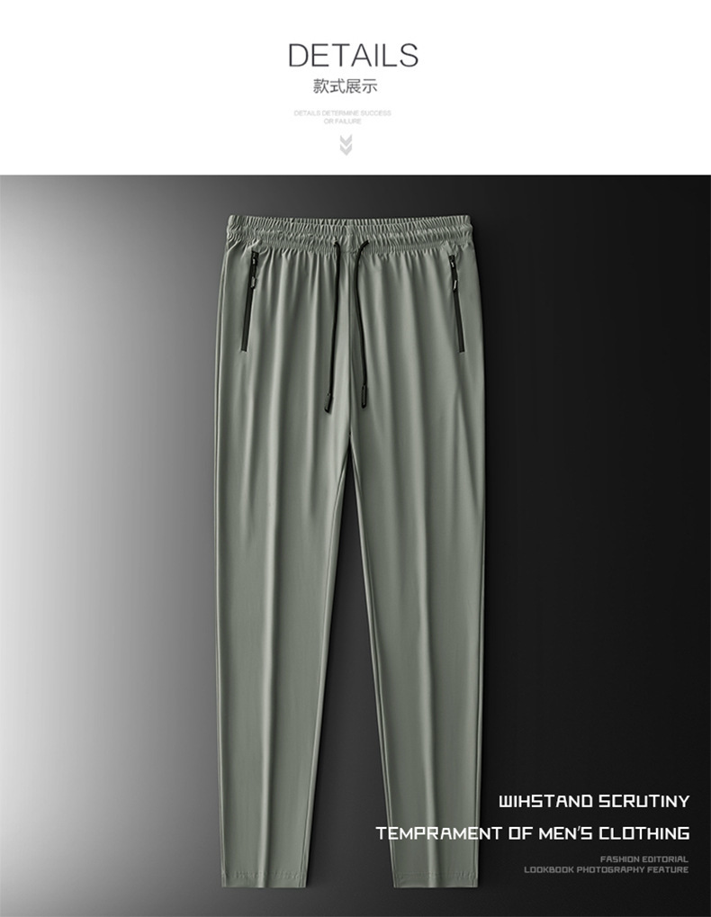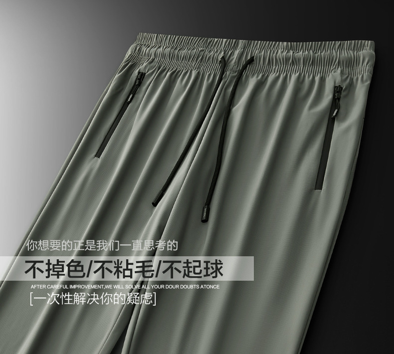 멋진 느낌! 에어컨 바지 남자 여름 얇은 아이스 실크 바지 남자 스포츠 바지 스트레이트 스트레치 통기성 대형 바지스토어 가기