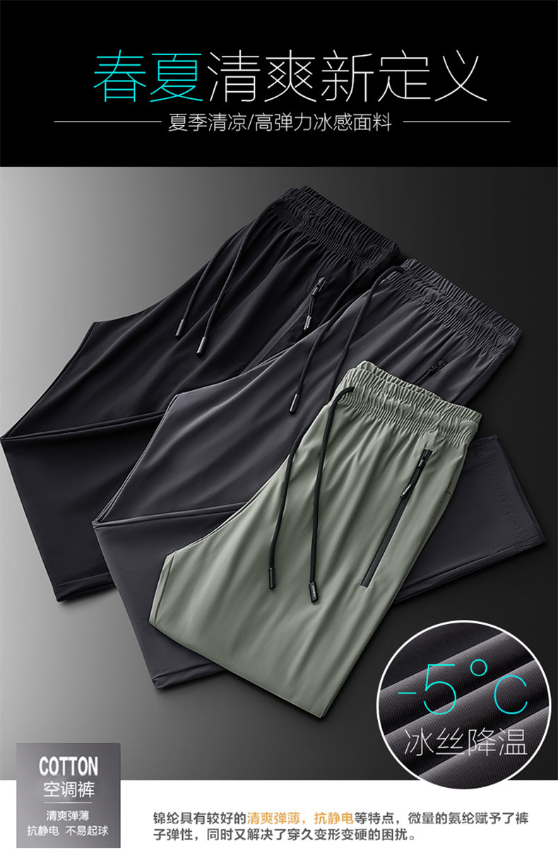 멋진 느낌! 에어컨 바지 남자 여름 얇은 아이스 실크 바지 남자 스포츠 바지 스트레이트 스트레치 통기성 대형 바지