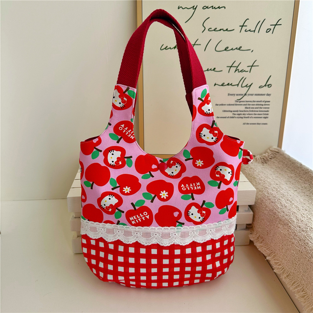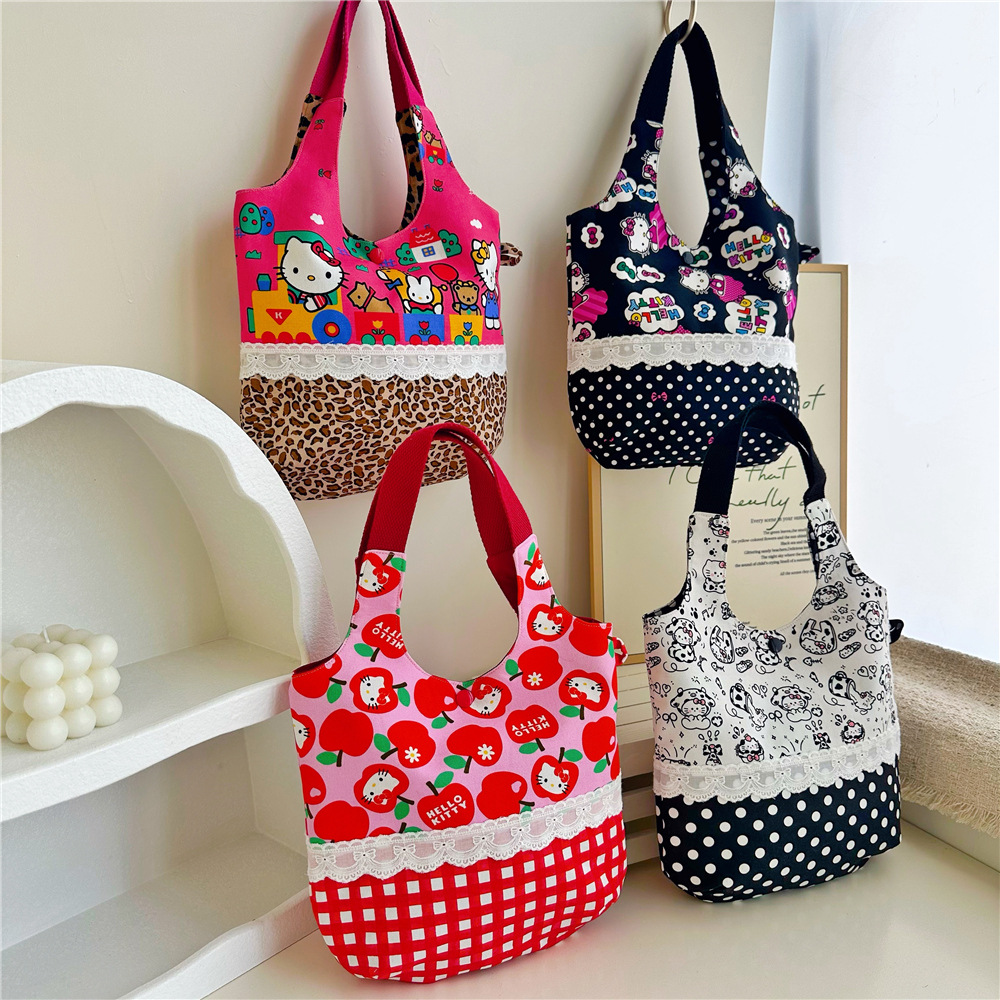 면 인쇄 KT 만화 고양이 핸드백 직물 패치 워크 워킹 백 대용량 핸드백 수제 가방스토어 가기