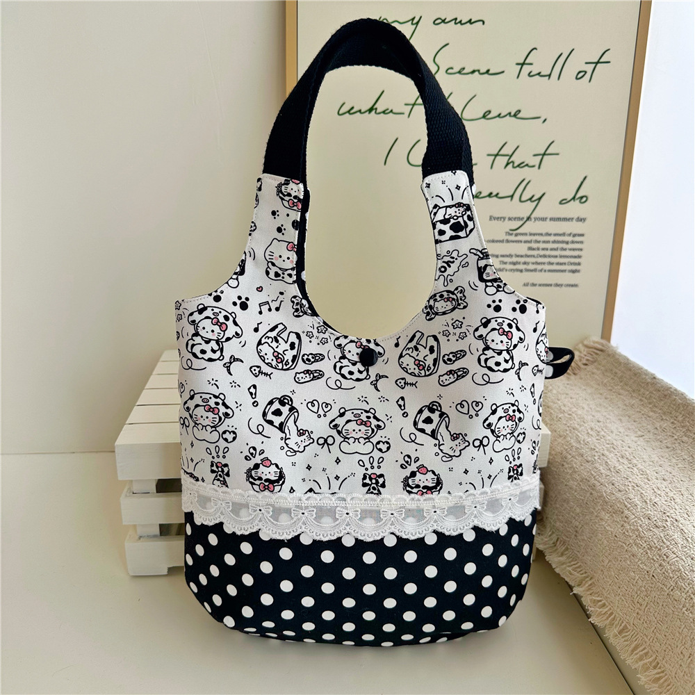 면 인쇄 KT 만화 고양이 핸드백 직물 패치 워크 워킹 백 대용량 핸드백 수제 가방