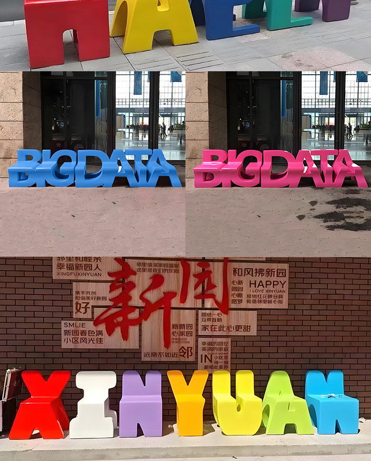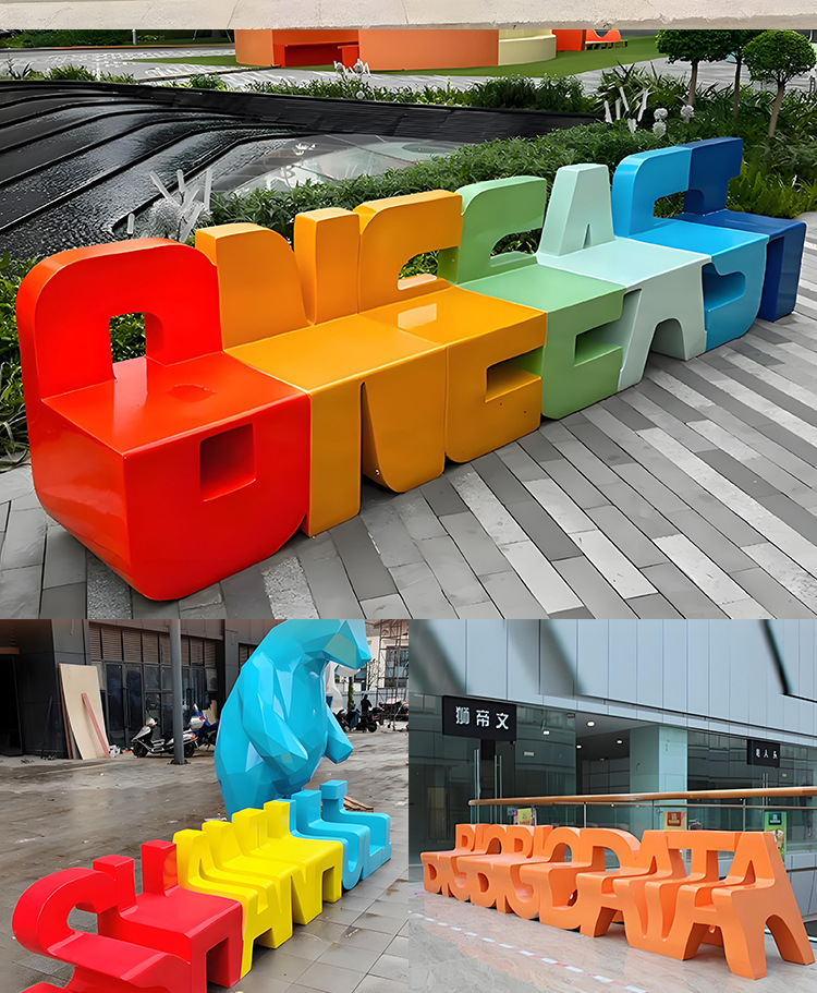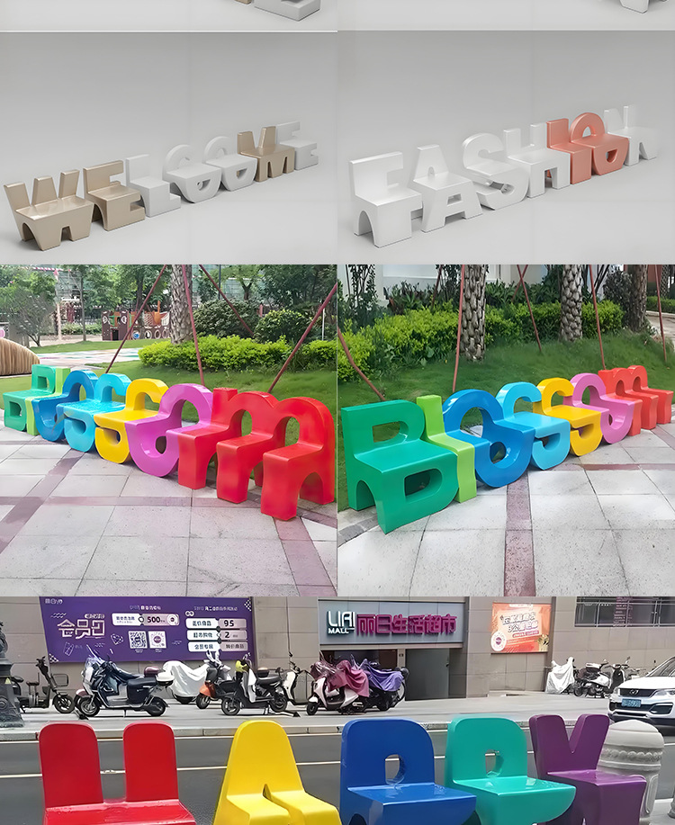 유리 섬유 강화 플라스틱 편지 의자 쇼핑몰 meichen 창조적 인 야외 쇼핑몰 학교 유치원 공공 결합 된 레저 의자