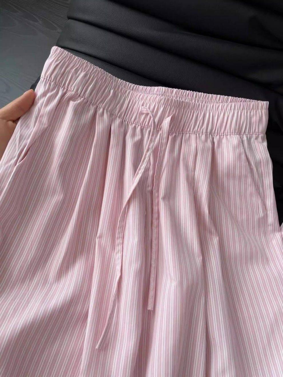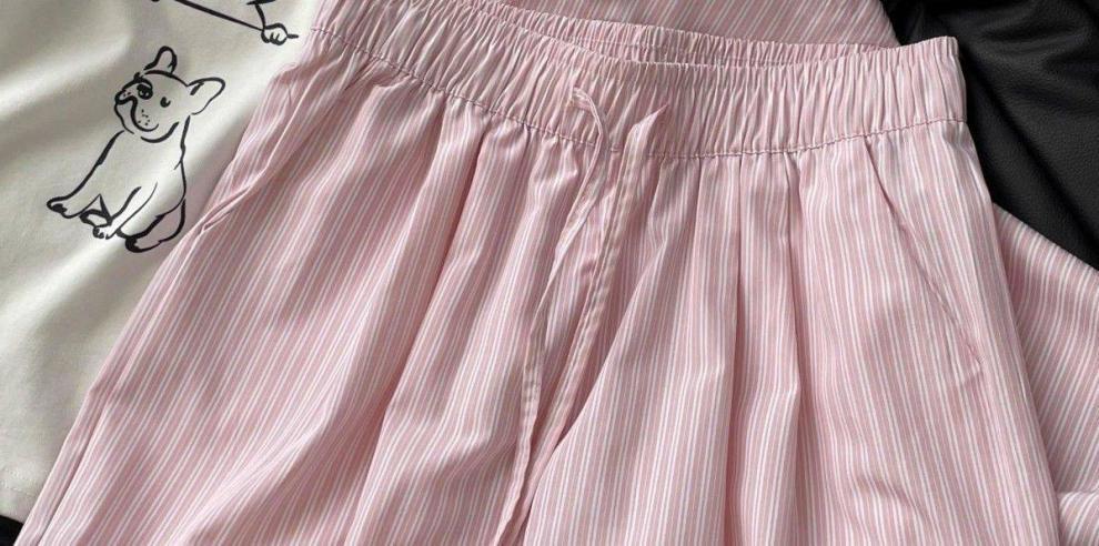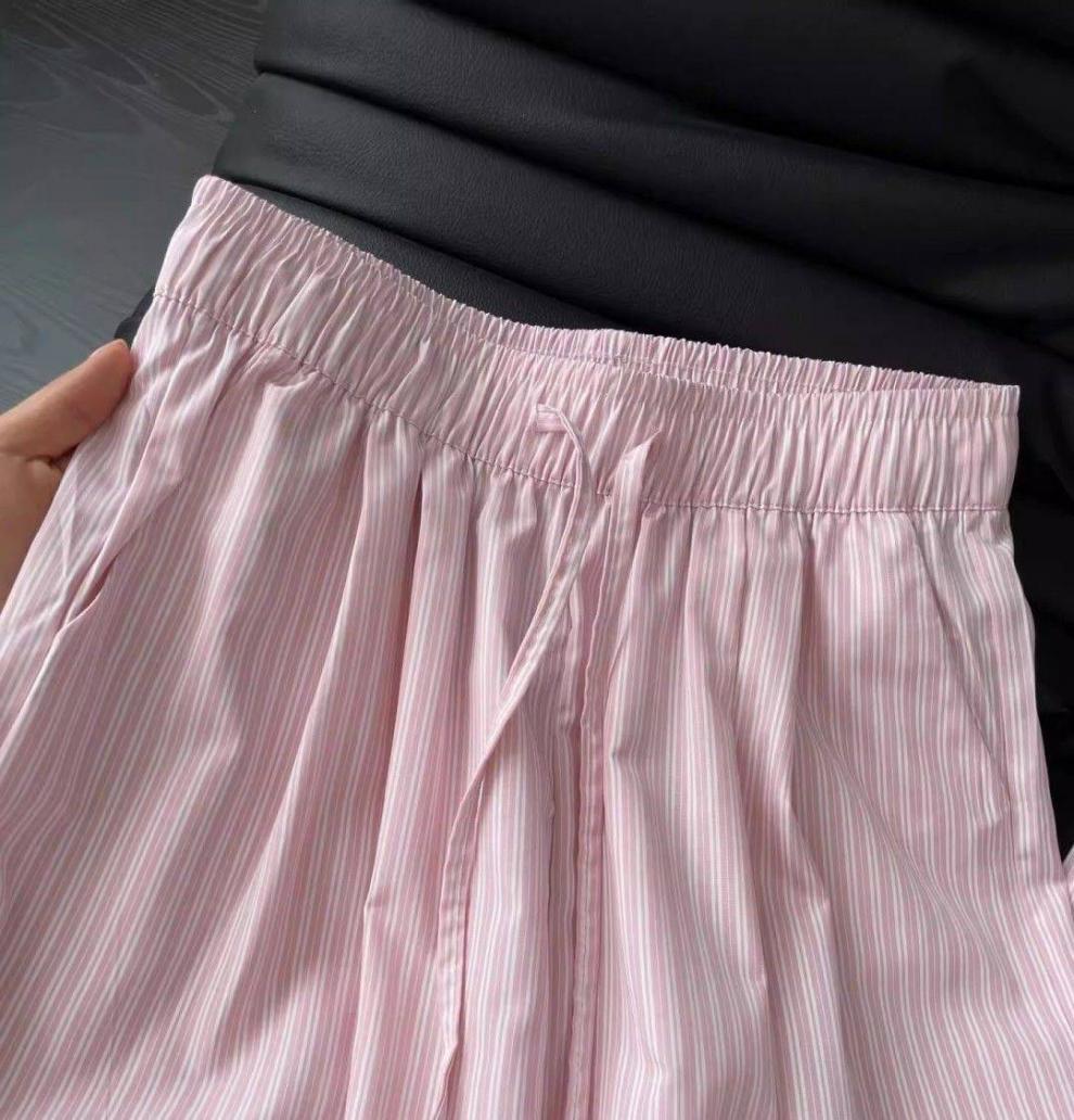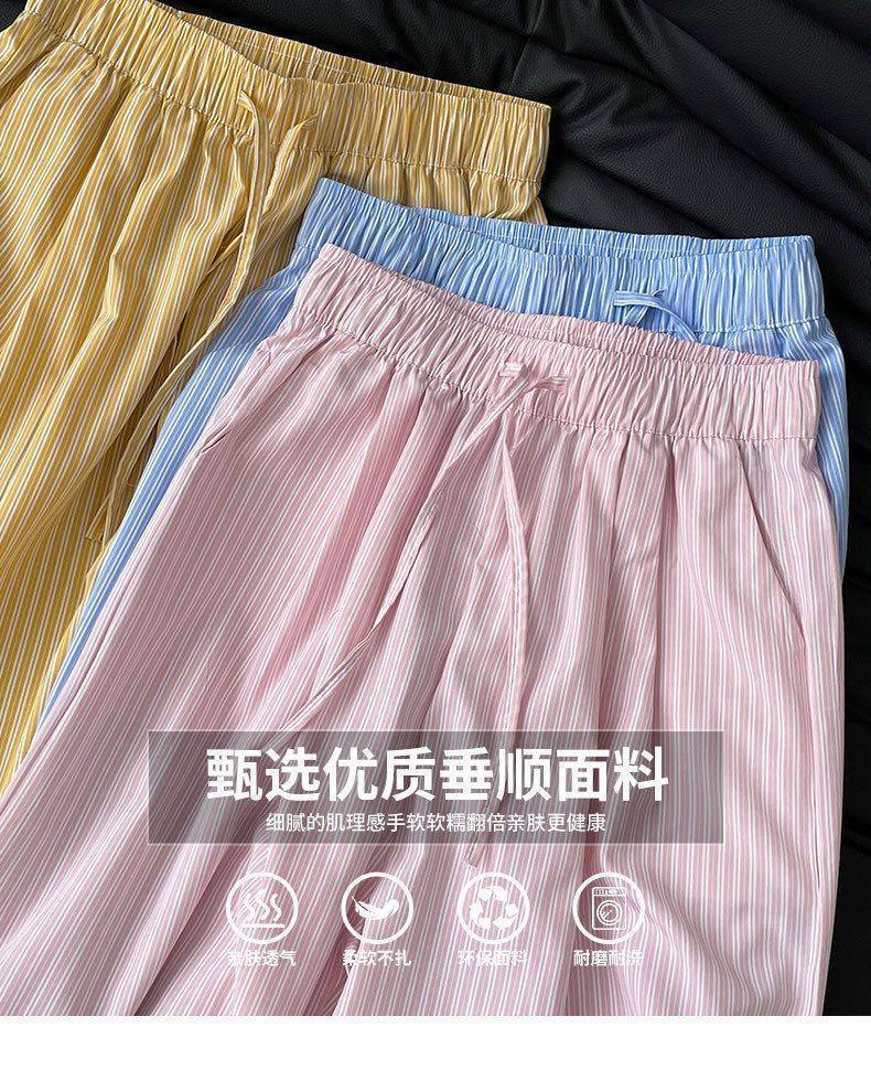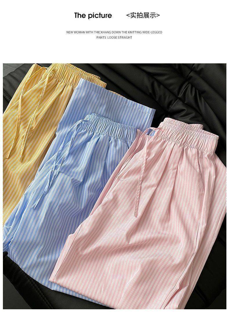 Ins 스타일 여름 레트로 게으른 스타일 신선한 스타일 수직 스트라이프 넓은 다리 느슨한 얇은 캐주얼 바지 여성 트렌디스토어 가기