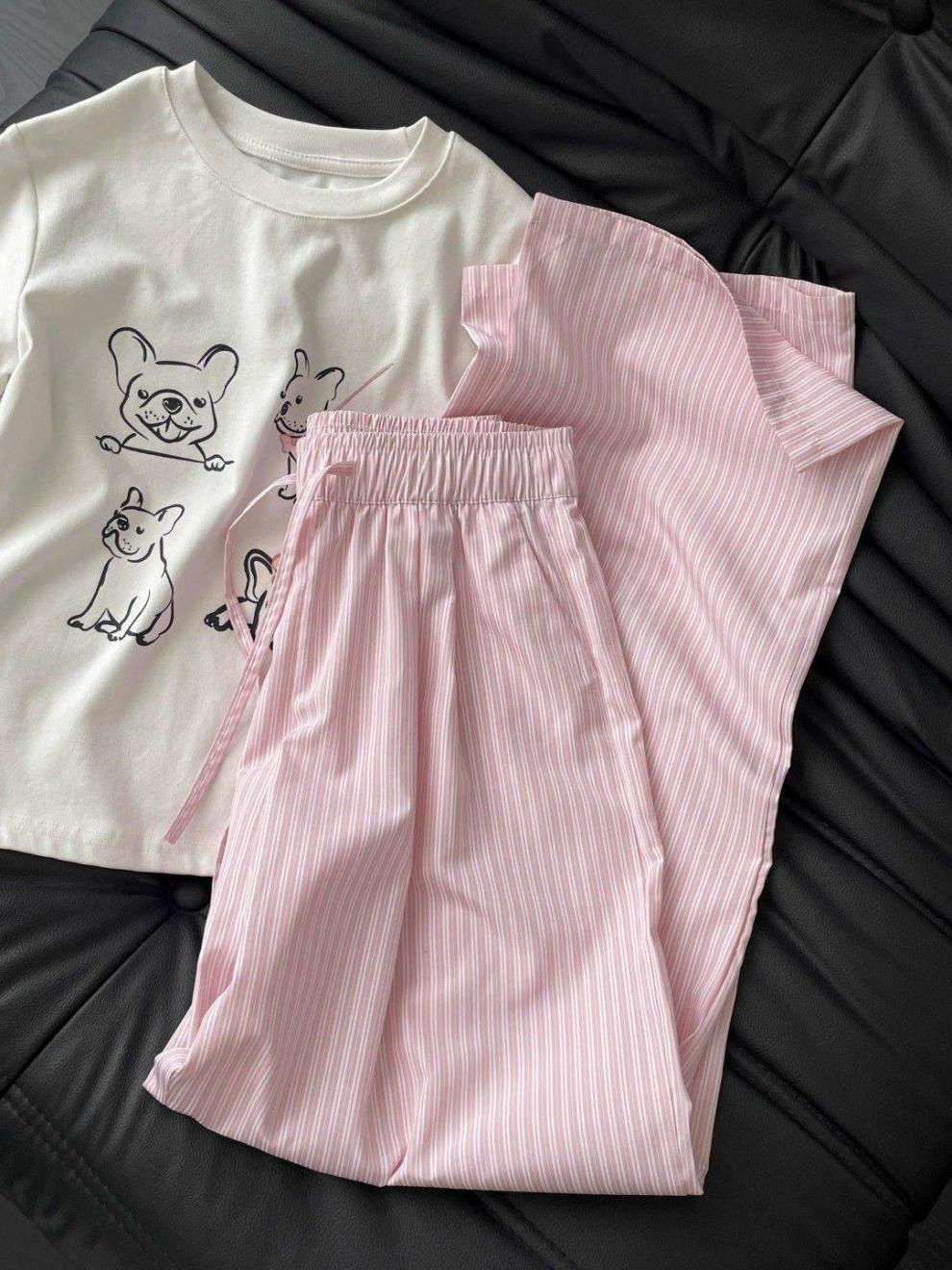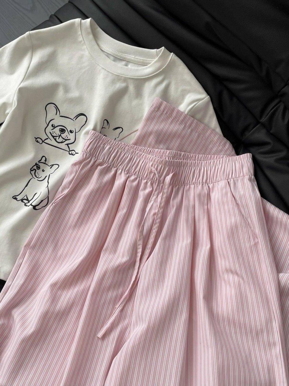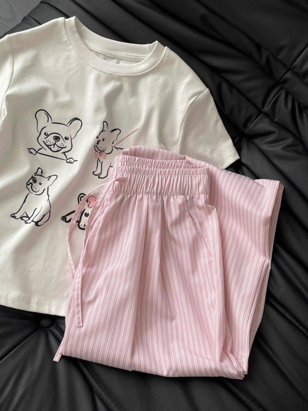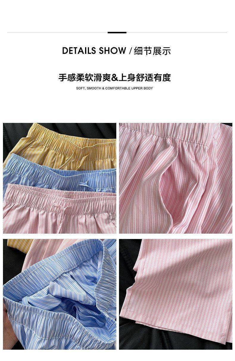 Ins 스타일 여름 레트로 게으른 스타일 신선한 스타일 수직 스트라이프 넓은 다리 느슨한 얇은 캐주얼 바지 여성 트렌디스토어 가기