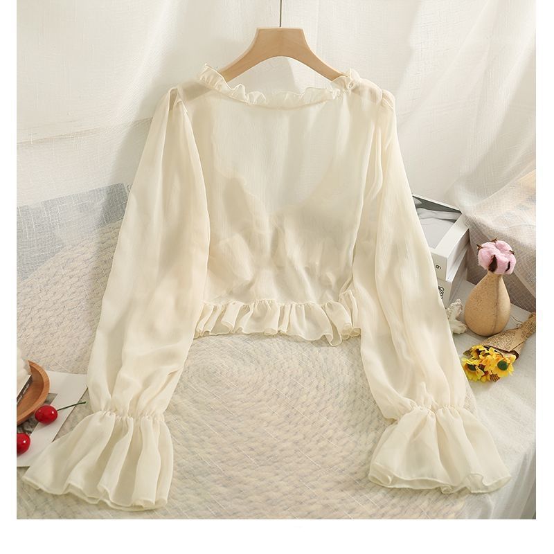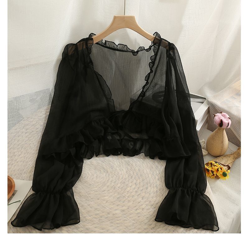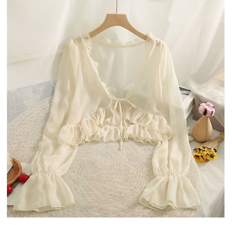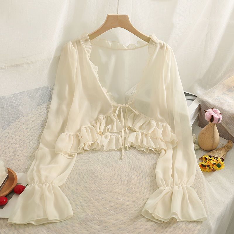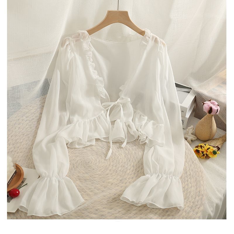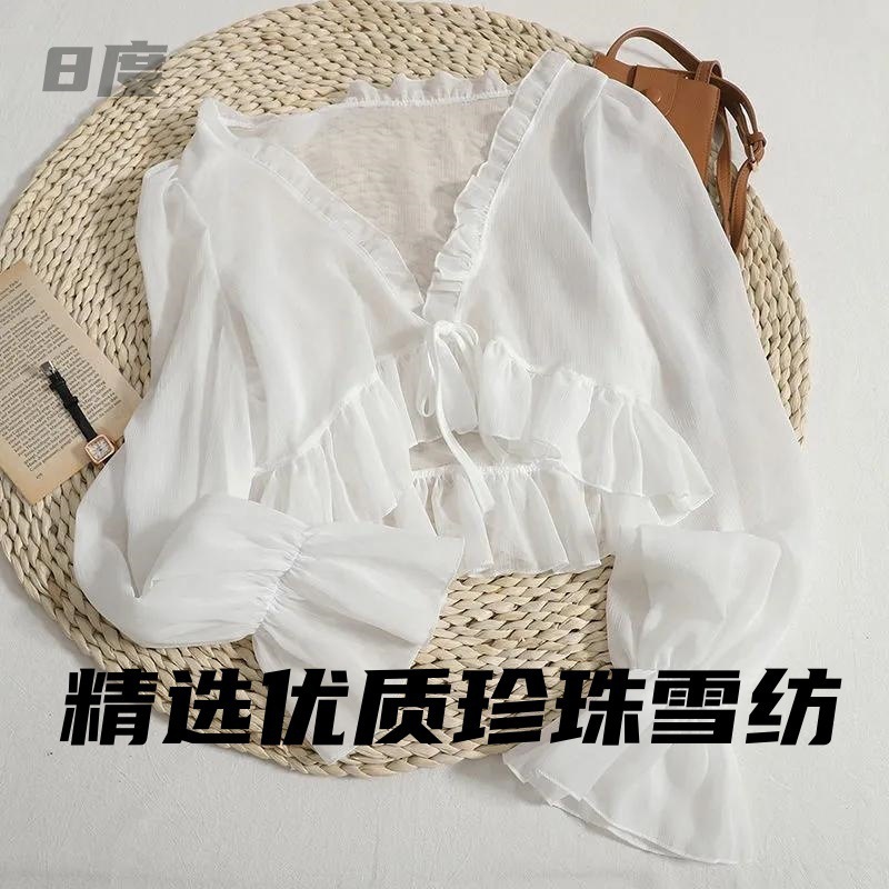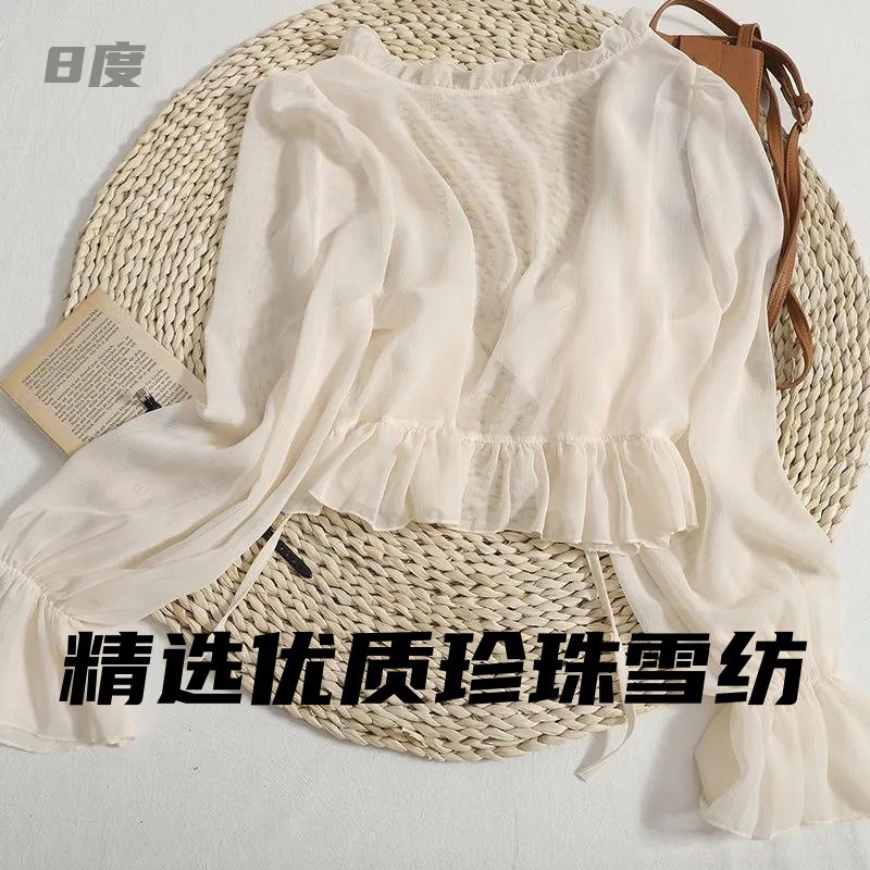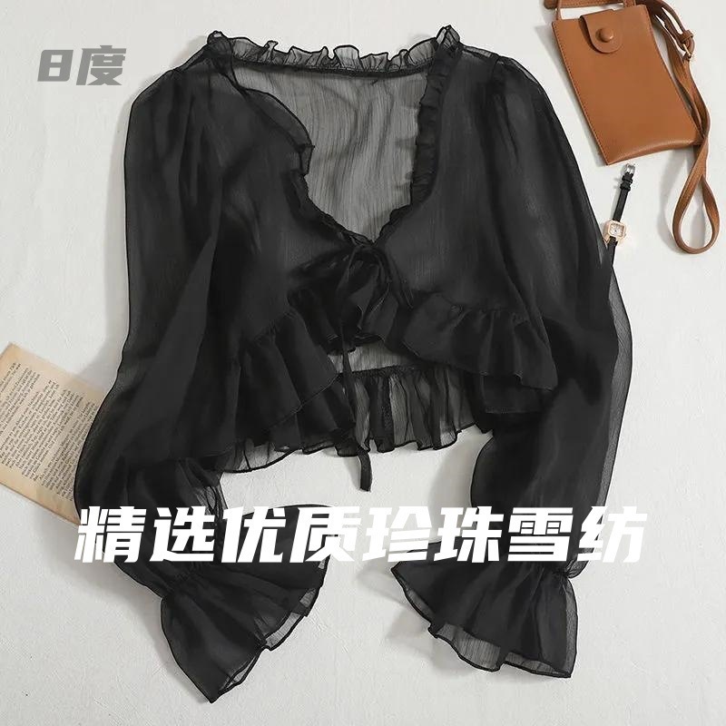 여성용 리본 짧은 쉬폰 자외선 차단 셔츠, 2025 여름 신작 다용도 자외선 차단 셔츠, 작은 숄스토어 가기