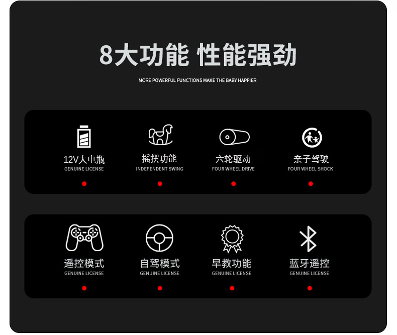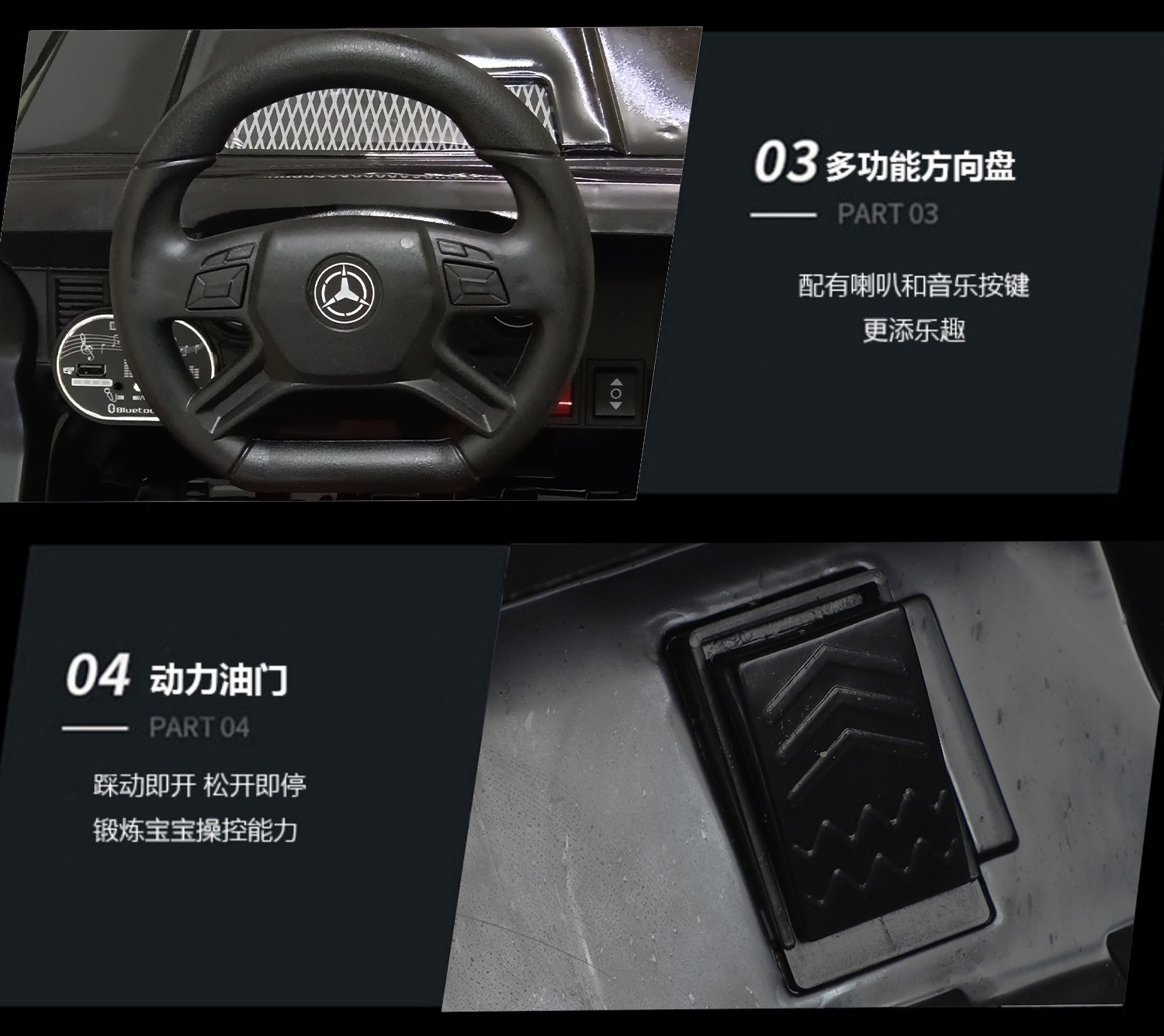 • 블랙 사륜구동 : 풀기능 + 성인용 페달 + 폼 소프트 휠 + 12v 대용량 배터리 + 가죽시트 + 휴대폰 리모컨 + 평생보증 - 전동구동
