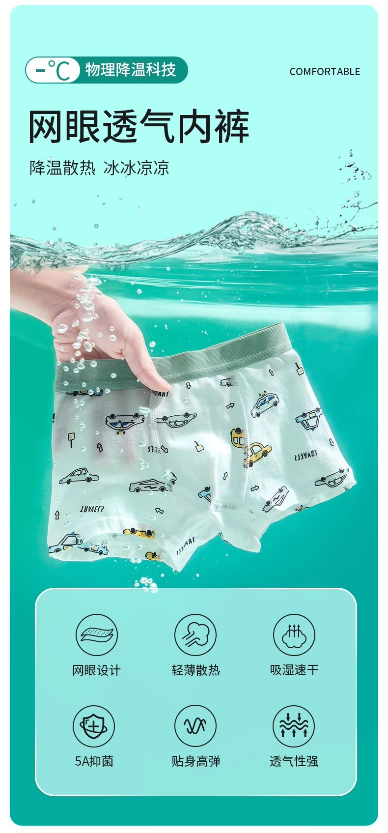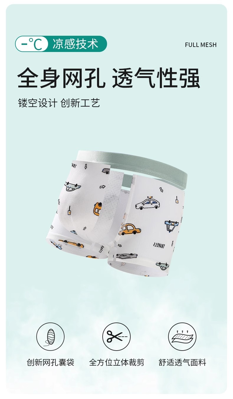 夏季小男孩a类棉发育期中大童冰丝网眼儿童宝宝四角短裤男童内裤