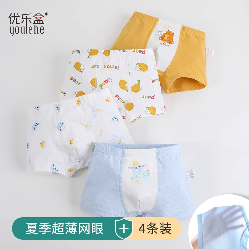 优乐盒男童宝宝中大童平角男孩四角儿童内裤纯棉a类不夹屁屁