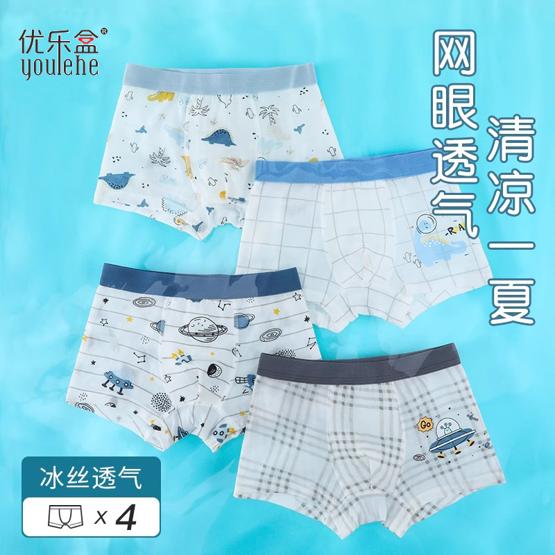 여름 작은 소년 클래스 면화 개발 단계 중 및 노인 어린이 아이스 실크 메쉬 어린이 아기 4 코너 반바지 소년 속옷스토어 가기
