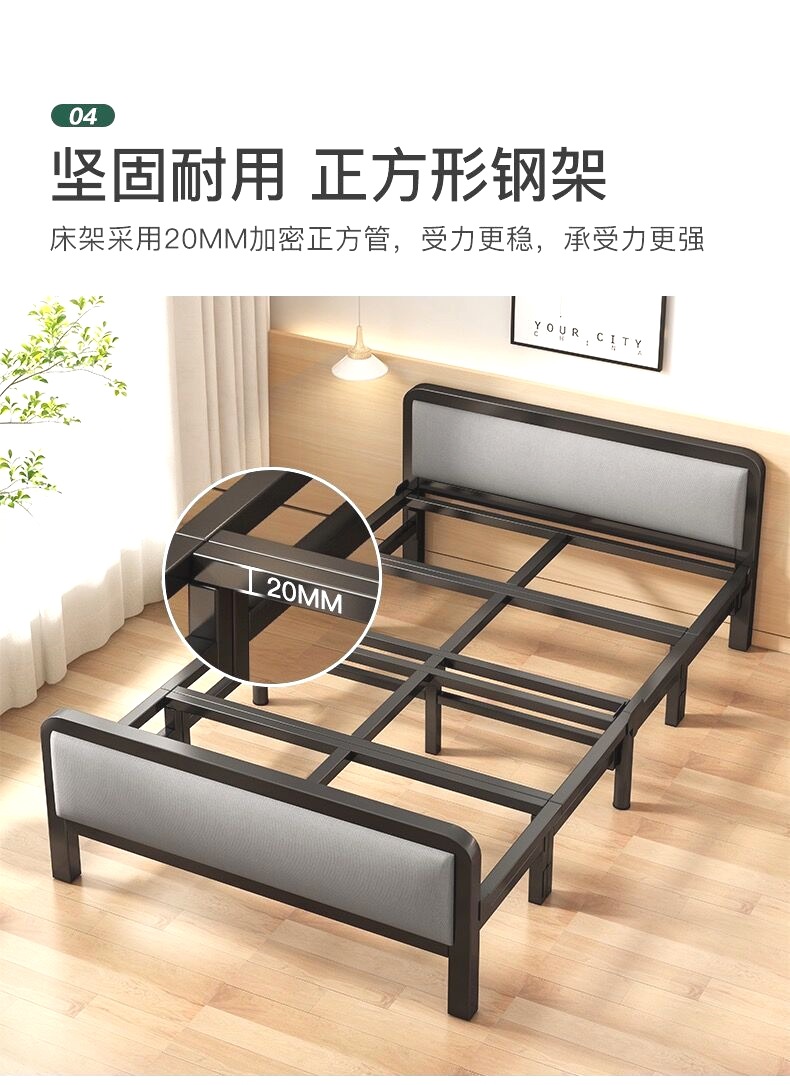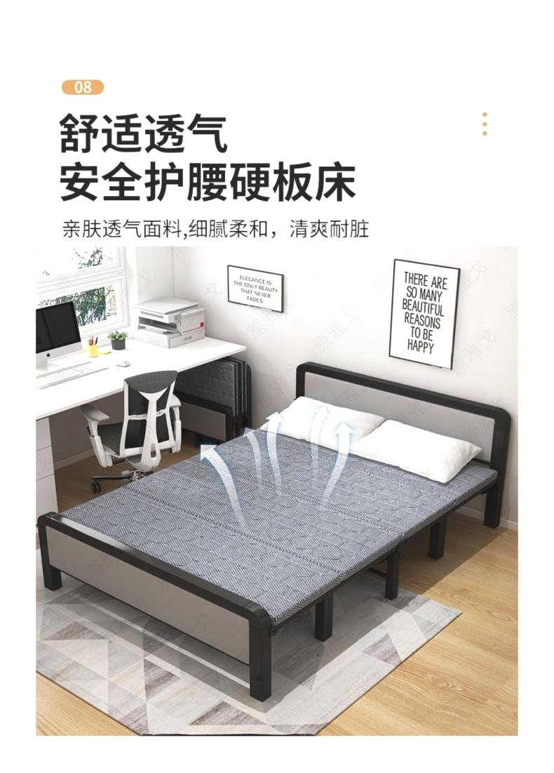 접이식 침대 성인 싱글 침대 가정용 더블 침대 사무실 점심 시간 침대 임대 집 철제 침대 단단한 나무 침대 L^