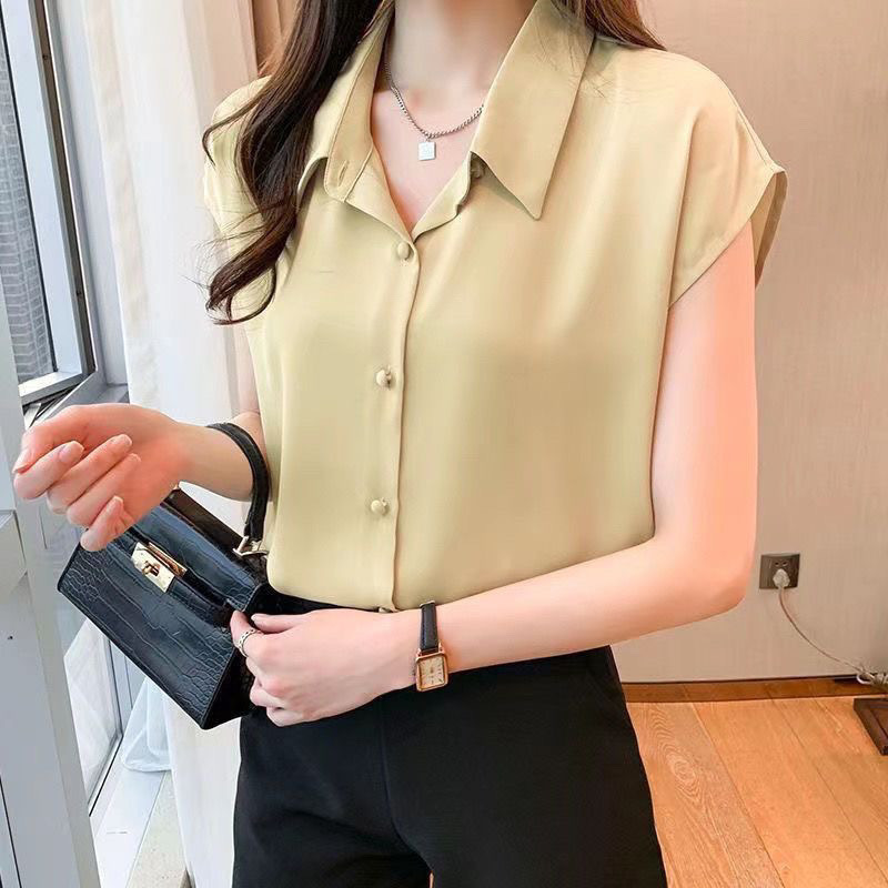 니치 디자인의 여성용 셔츠 2025 여름 새로운 스타일 슬림 쉬폰 반팔 탑 전문 셔츠 얇은 스타일스토어 가기
